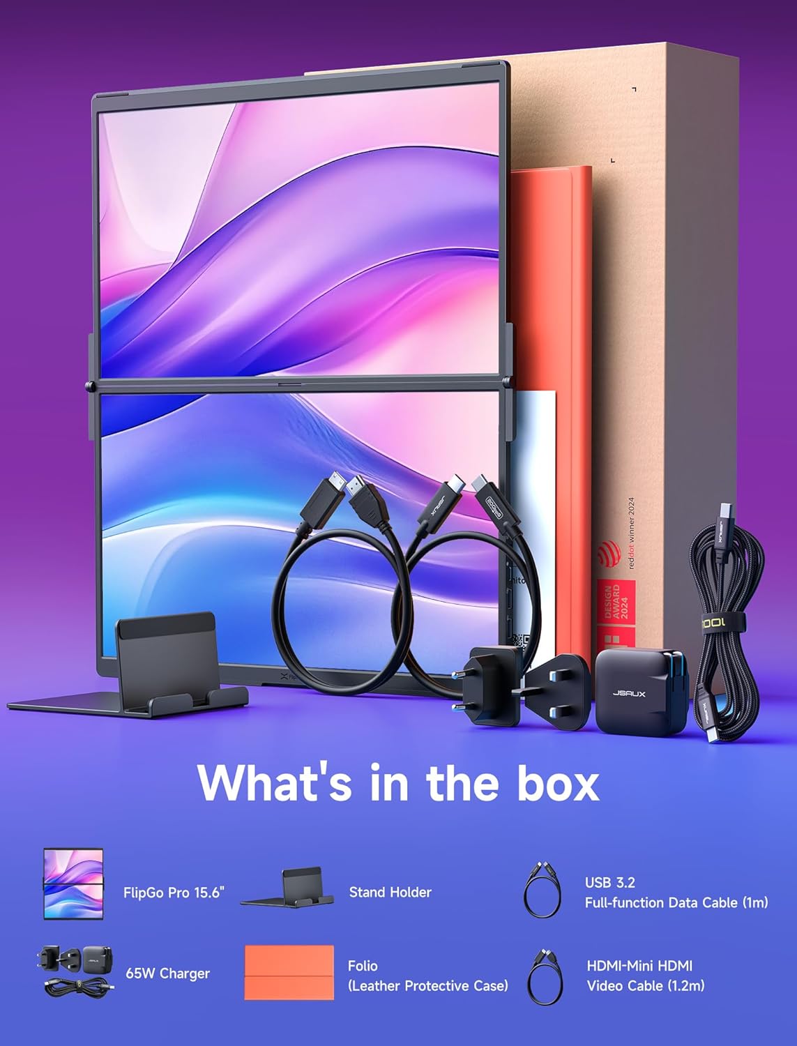 【Innovative and Practical】 The JSAUX FlipGo Pro 15.6″ dual stacked portable monitor is designed specifically for laptops. FlipGo won the 2024 iF Design Award and Red Dot Design Award. It supports Windows and macOS, offering a triple-screen workstation to boost productivity by up to 300%. It is ideal for users seeking an economical display solution[The JSAUX FlipGo Portable Monitor lineup includes five models: PM0201, PM0204, PM0205, PM0207, and PM0209. Each one is designed with unique features to suit different needs—check the detail page for a full comparison]
