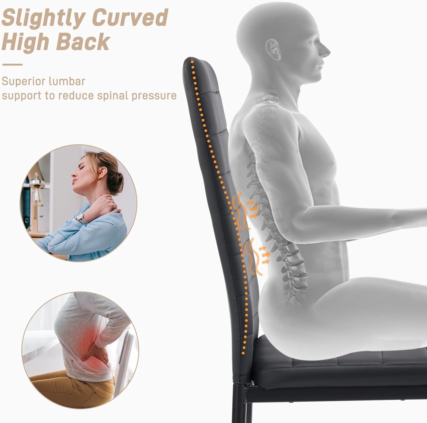 Karl home Dining Chairs Set of 4, PU Leather Balck Kitchen Chairs with Padded High Back & Foot Cap Protection for Dining Kitchen Living Room,300lbs Capacity,Space-Saving