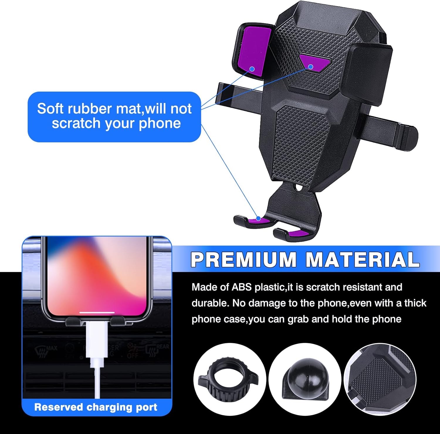 【360 Degree Rotation, Fully Adjustable】The car phone holder mount is well designed with 360 degree swivel ball, you could adjust your phone into any angle or positions for best viewing. Auto lock, easy to use. Press your phone back against the button to clamp your phone, press the sides to expand and release it.