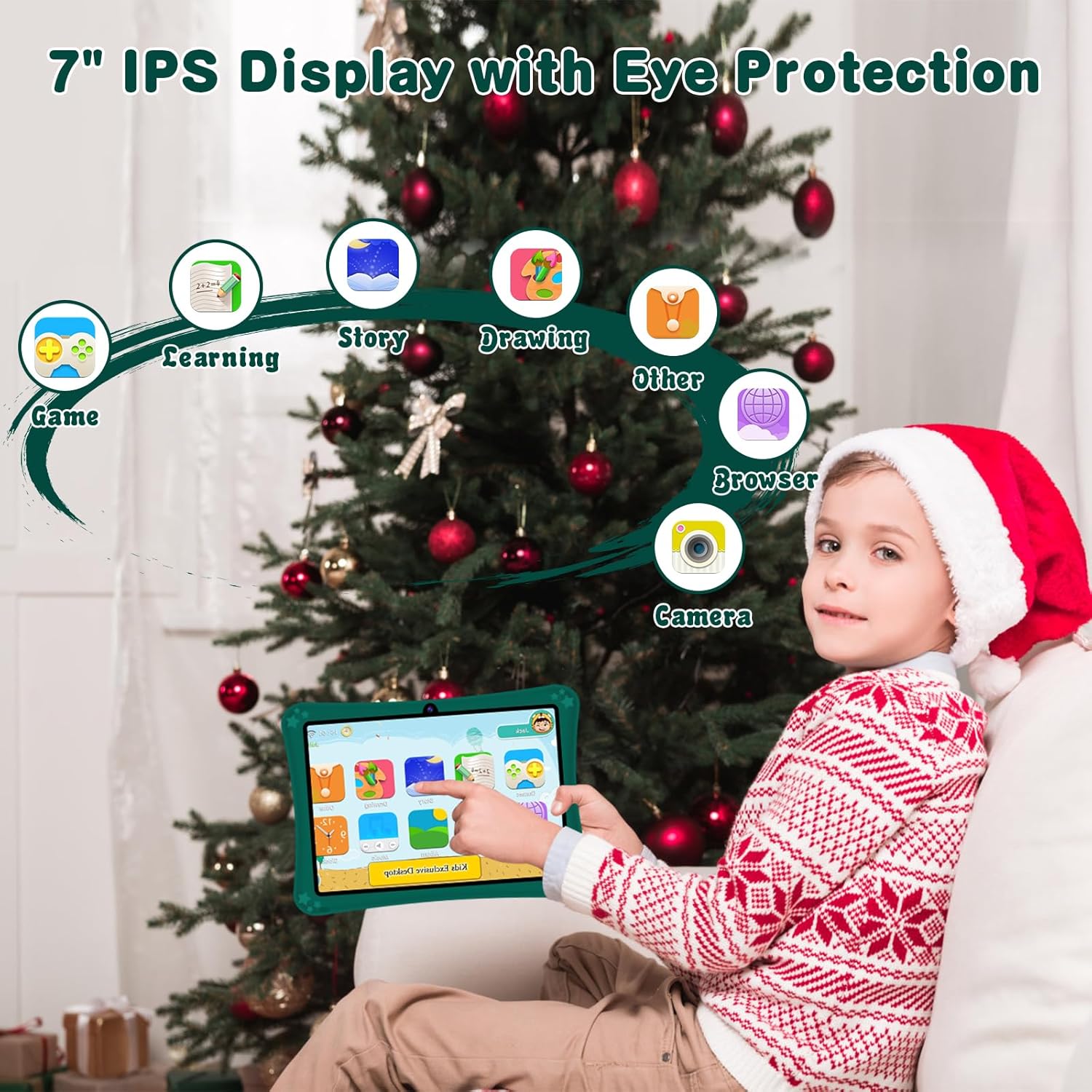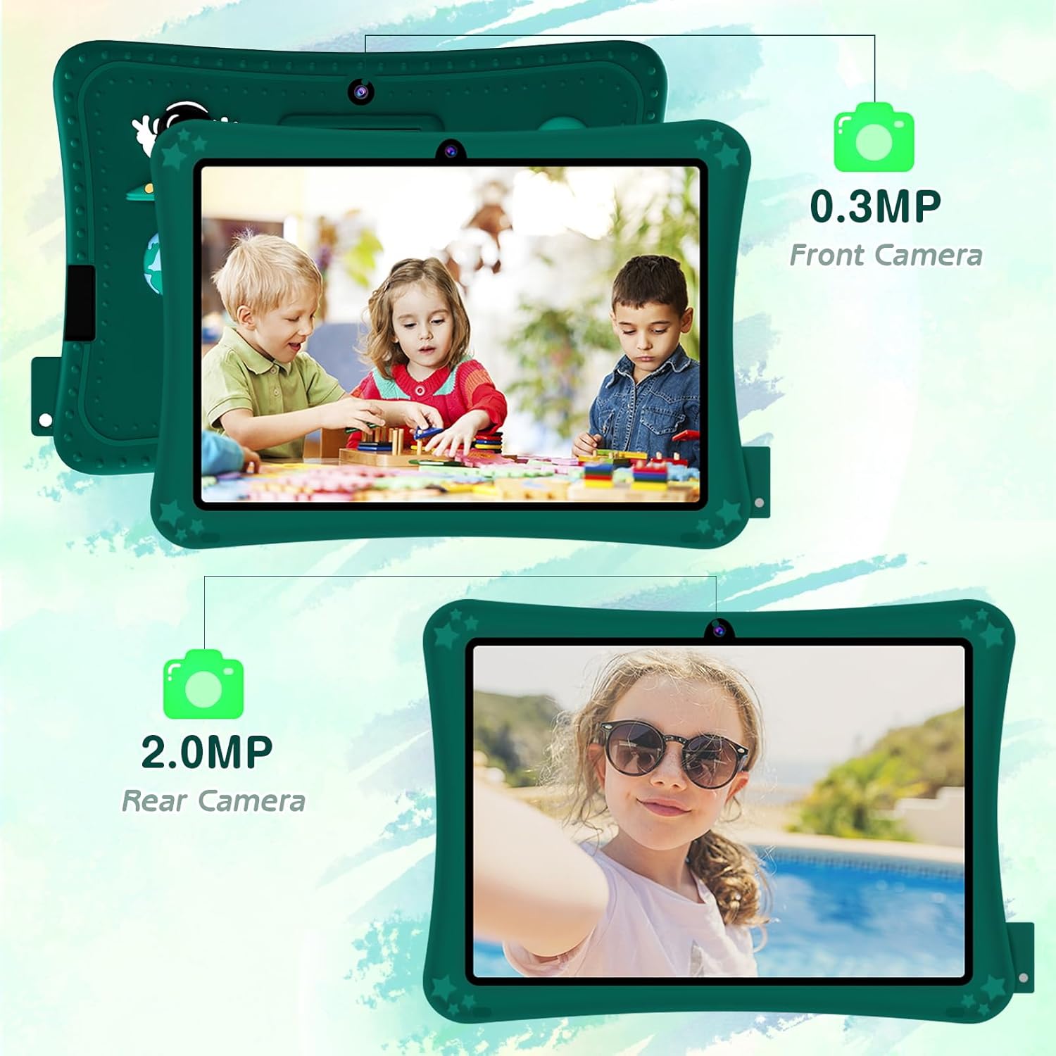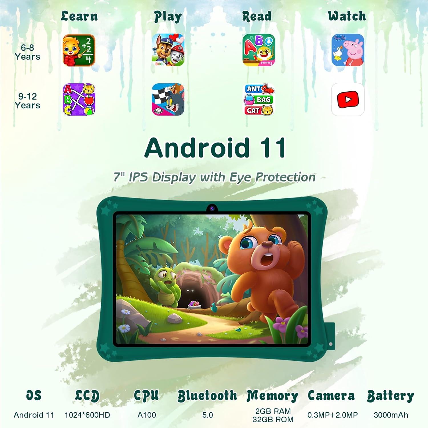 Kids Tablet Android 11 Tablets for Kids 2+32 GB Toddler Pad 1024×600 IPS Touch Screen Dual Camera WiFi 5.0 Parental Control with Proof Case (Green)