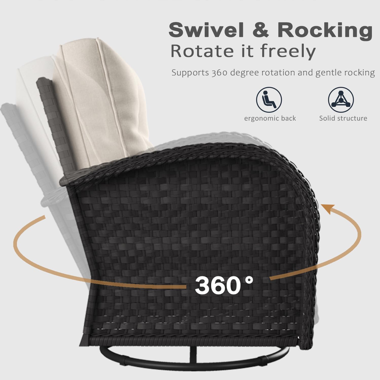 LayinSun 10 Pieces Outdoor Patio Furniture Set with Fire Pit Table, Rattan Wicker Sectional Swivel Rocker Chairs Sets