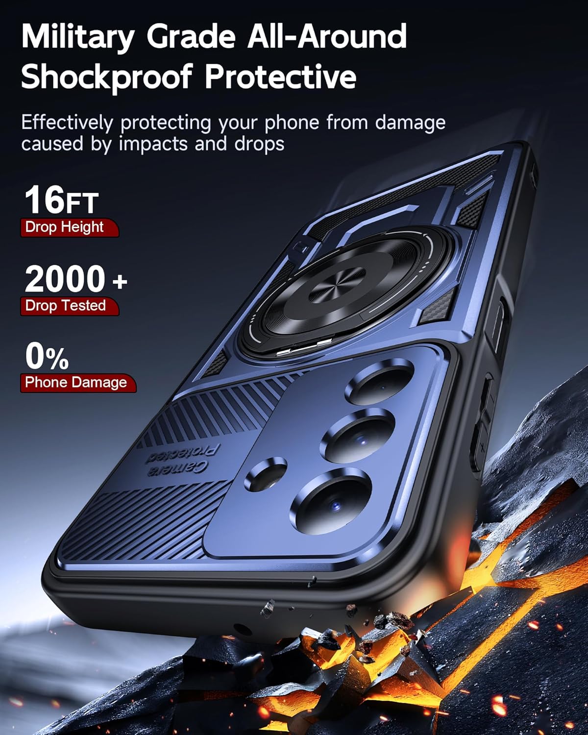 16FT Military-grade Shock Protection: The inner thickened TPU and hard-shell PC material are combined with an edge invisible airbag design. The four corners are reinforced, compared with ordinary PC case, the impact resistance is increased by 40%, reducing over 90% of the body damage caused by drops. It can easily handle unexpected situations such as outdoor sports, commuting, and accidental slips