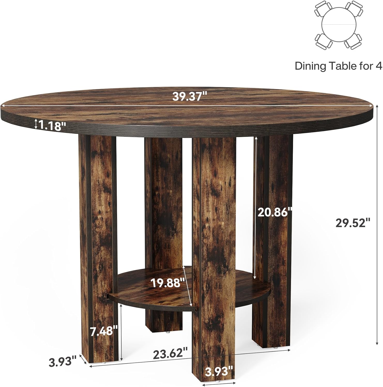 39.27″ D x 29.52″ H: The round dining table offers ample space for 4 people to sit comfortably, making it ideal for small kitchens or dining cornersWith Storage Shelf: This small kitchen table integrates a built-in lower shelf, enabling effortless access to items like placemats and tableware