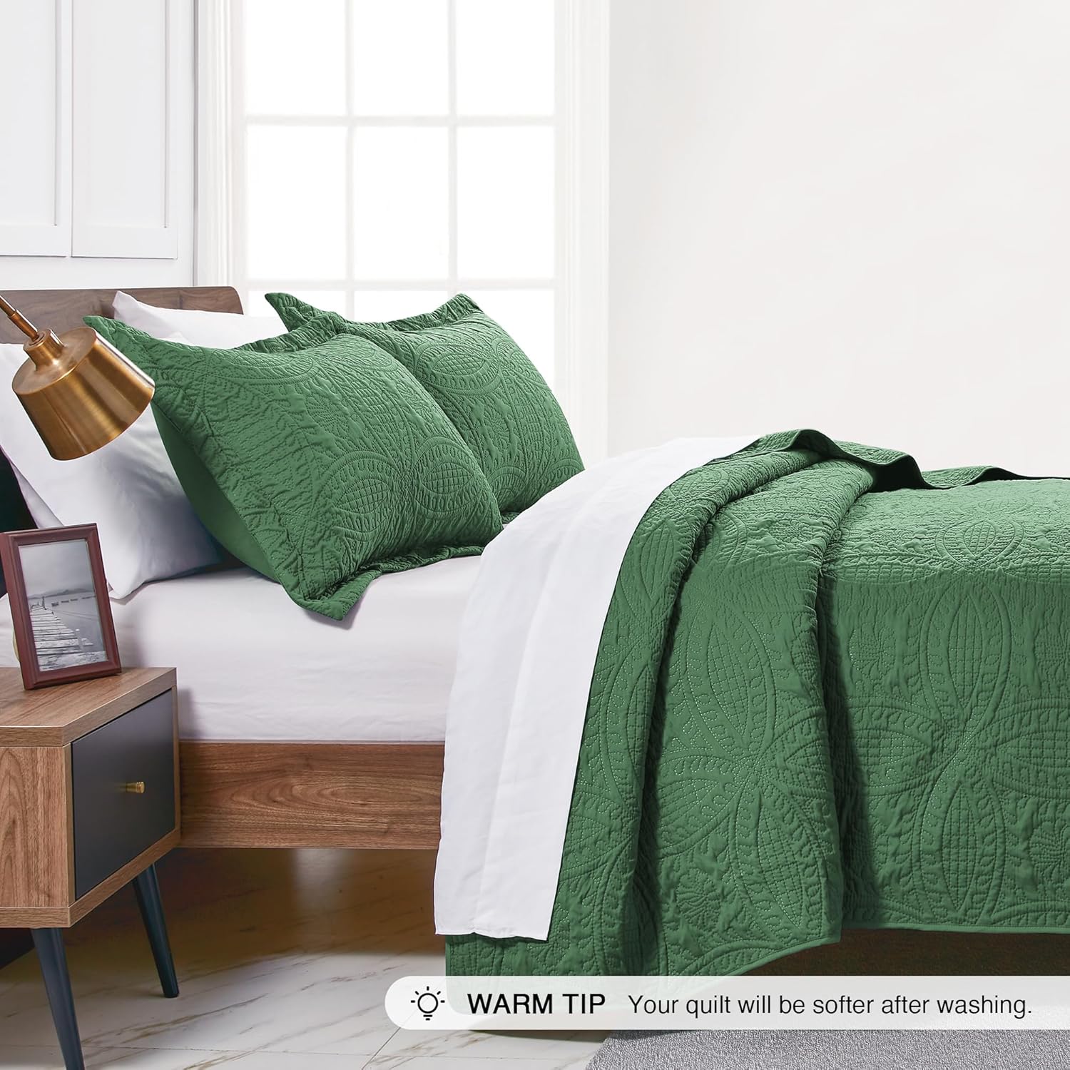 Love’s cabin Twin Quilt Set Olive Green Bedspreads – Soft Bed Summer Lightweight Bedspread Comforter – Modern Style Coin Pattern Coverlet for All Season – 2 Pieces (1 Quilt, 1 Pillow Sham)