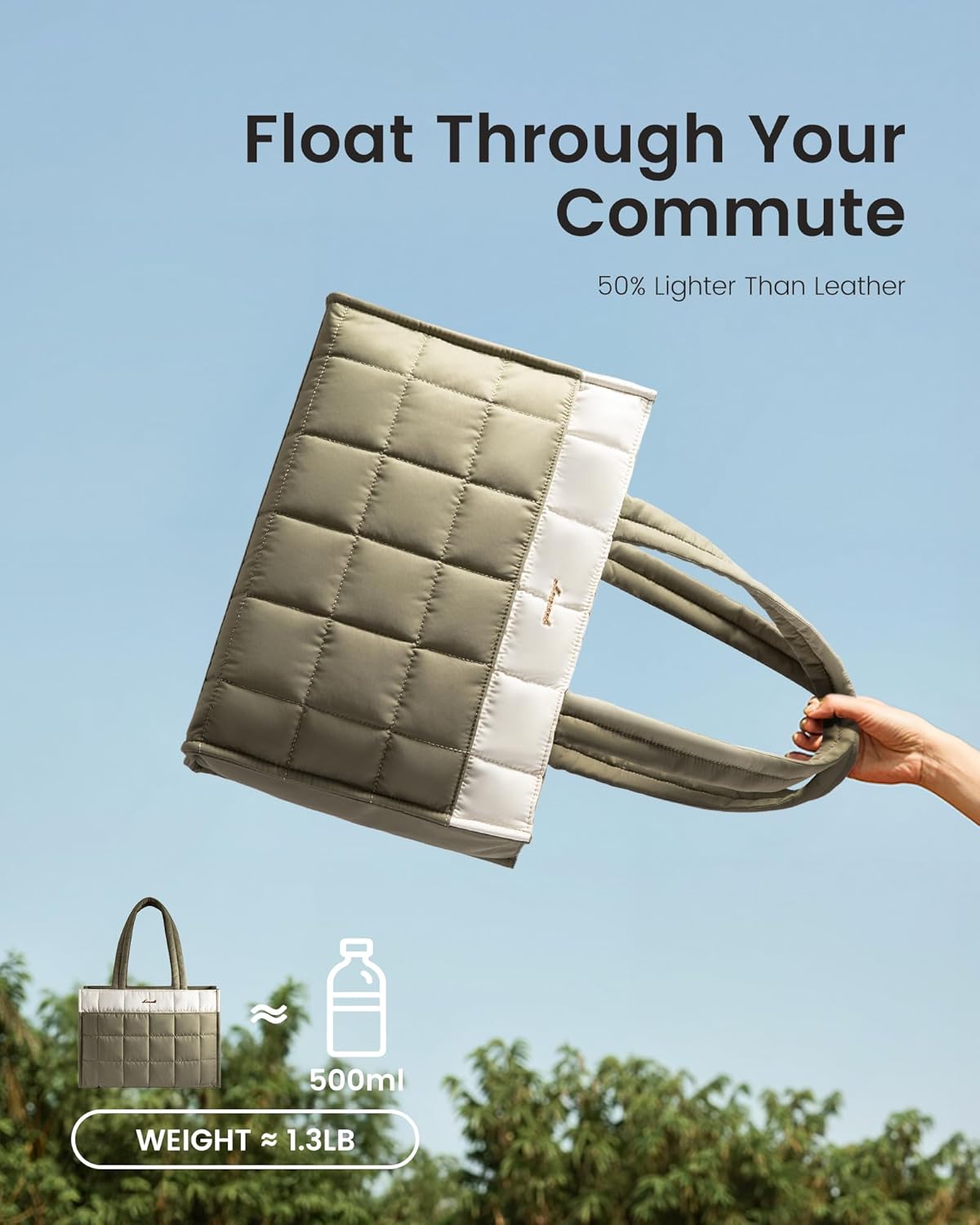 【Commute Without the Burden—Weighs just 1.3 lbs!】Say goodbye to heavy bags—over 50% lighter than traditional leather laptop totes! This ultra-light tote is your go-to for commuting, work, errands, or travel.