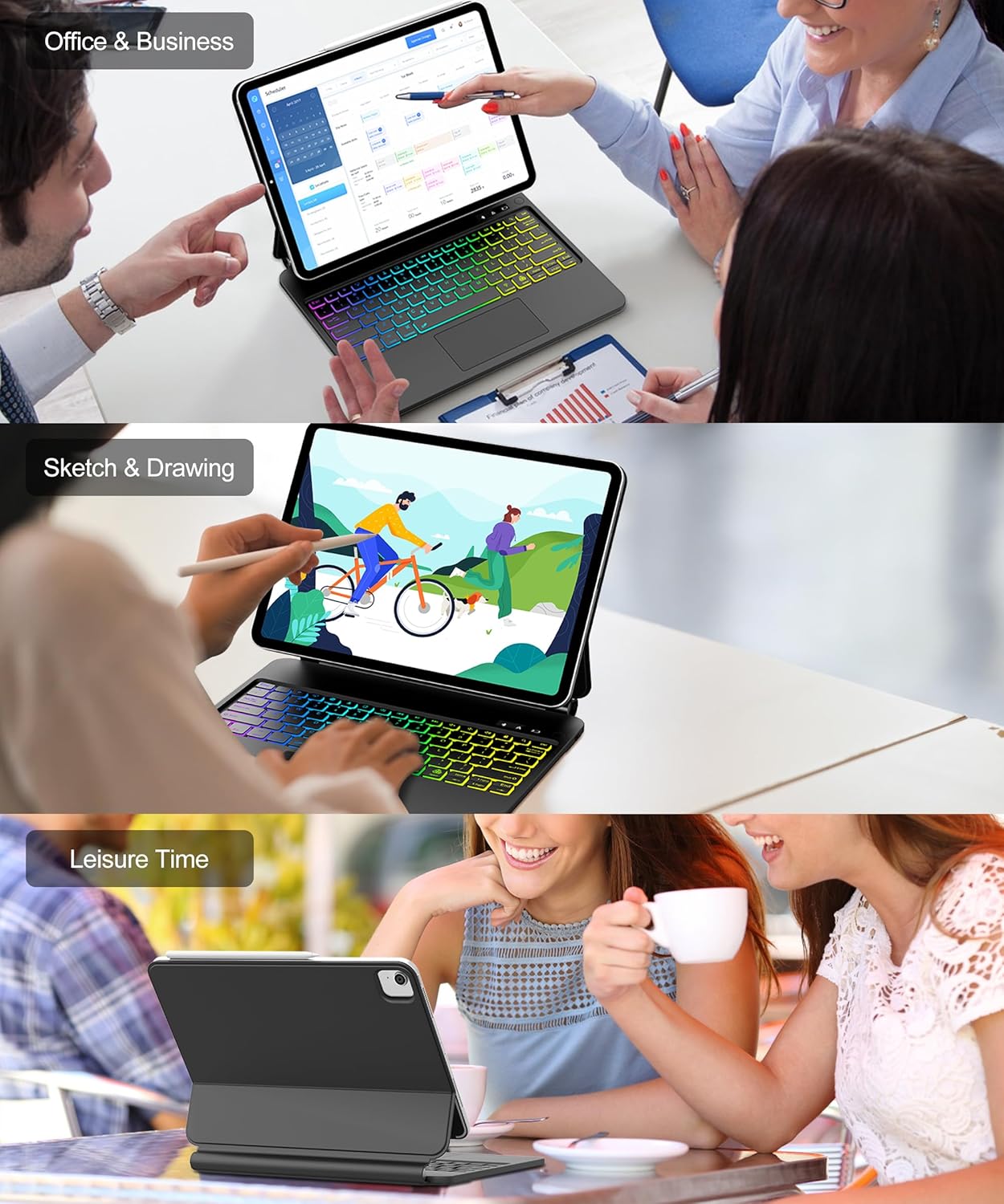Floating Stand & MacBook Feel – Transform instantly: Magnetic floating cantilever stand (inspired by Magic Keyboard for 12.9-inch iPad Pro) offers perfect viewing angles. Paired with the glass trackpad, this ipad pro 12.9 case with keyboard delivers true laptop efficiency.