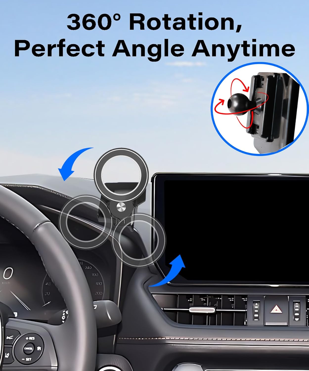 Magnetism Car Phone Holder for Toyota RAV4 2019-2025 Accessories Compatible with MagSafe Hands-Free 360 Degree Rotation Adjustable Cell Phone Mount Does Not Affect Air Vent
