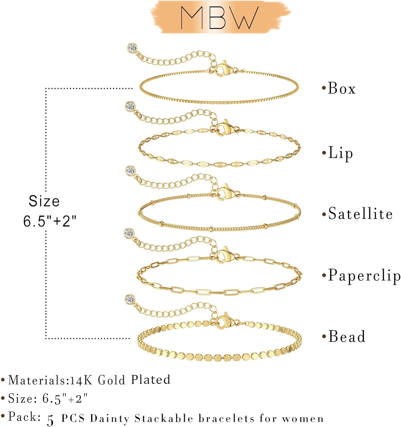 Be the first to review “MBW Gold Bracelets for Women Trendy, Dainty 14K Gold Plated Bracelet Stack Beaded Chain Bracelet Set Thin Small Cute Paperclip Bracelets Fashion Waterproof Jewelry Gift Gold Accessories for Women”