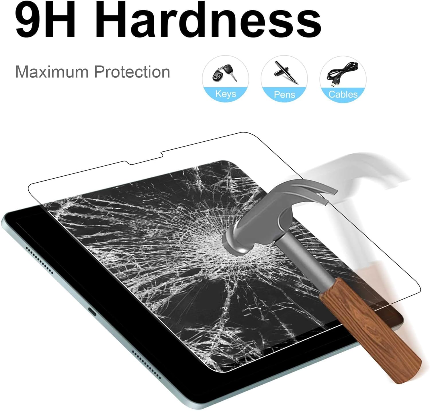 The ArmorShield protector uses 9H hardness tempered glass with a multi-layer design including an anti-shatter layer and scratch-resistant coating, offering reliable protection from daily items like keys, pens, and cables.