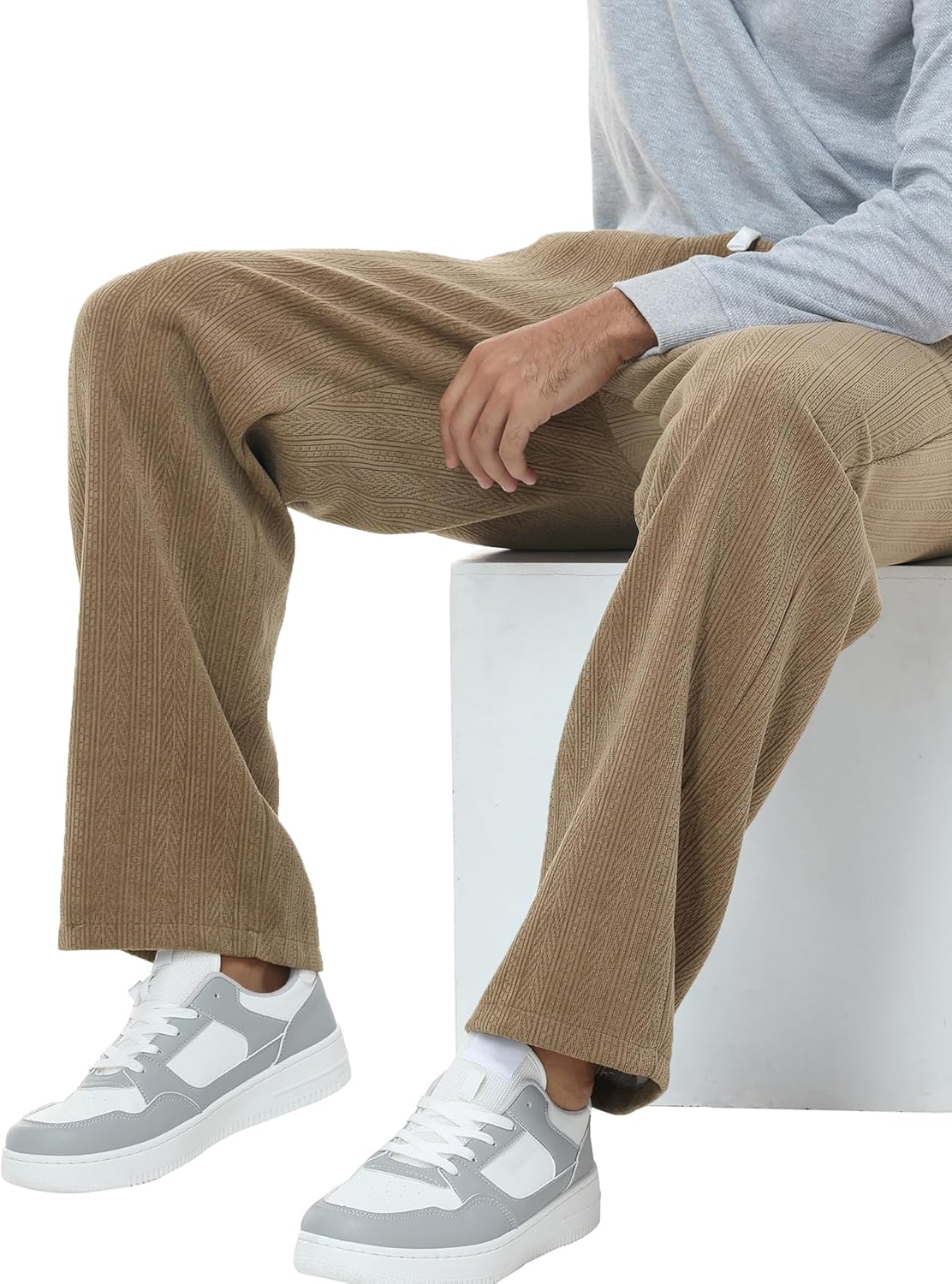 Mens Wheat Ear Texture Casual Elastic Waist Drawstring Baggy Pants Loose Fit Wide Leg Straight Sweatpants