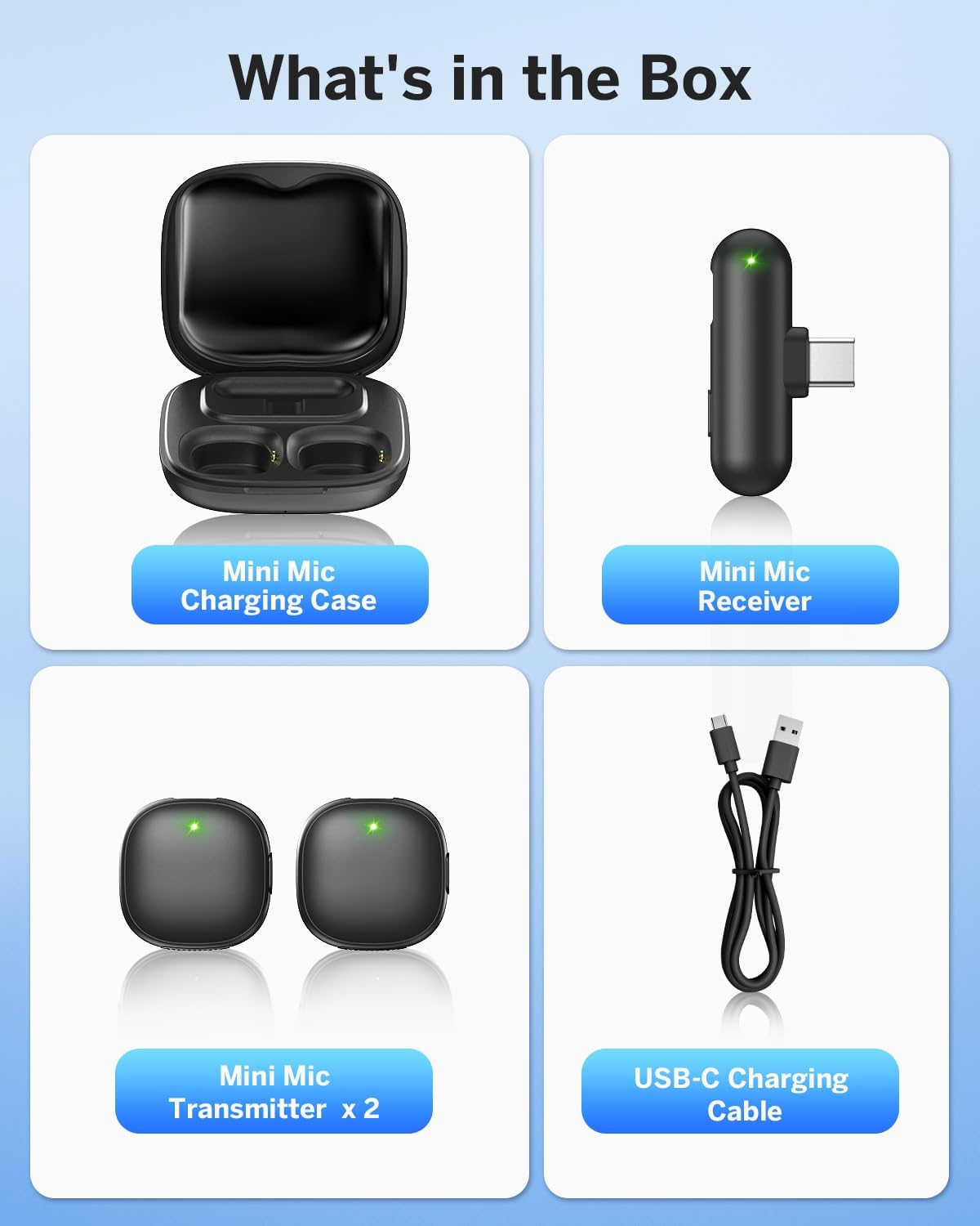 Mini Wireless Lavalier Microphone for iPhone/Android/PC/Tablets with USB-C Plug, AI Noise Cancelling, Magnetic Mic, 40H Battery Life with Charging Case, Lapel Microphone Wireless for Video Recording
