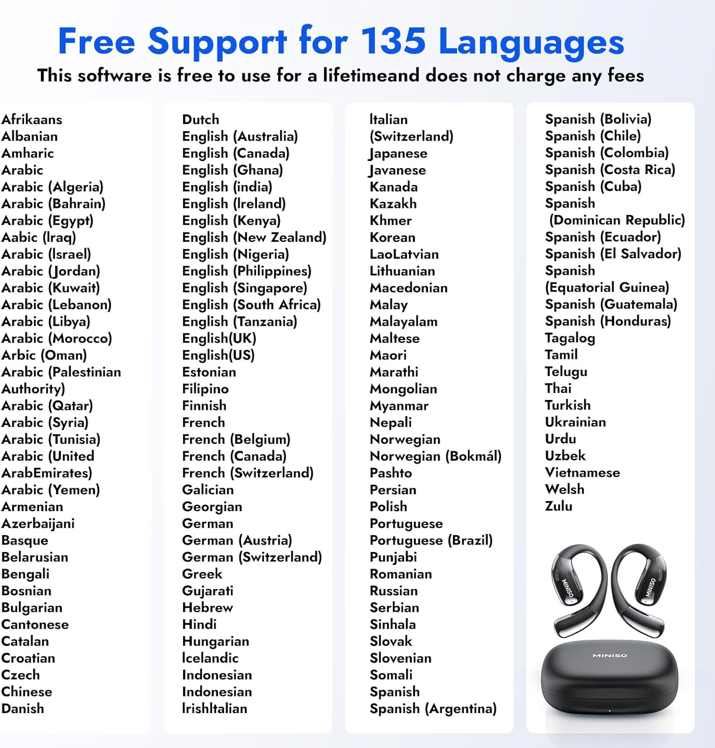 MINISO Multifunctional AI Headphones:With Saymi Intelligence APP, you can realize Al binaural translation, Headphone + mobile phone translation, Al chat and many other functions!