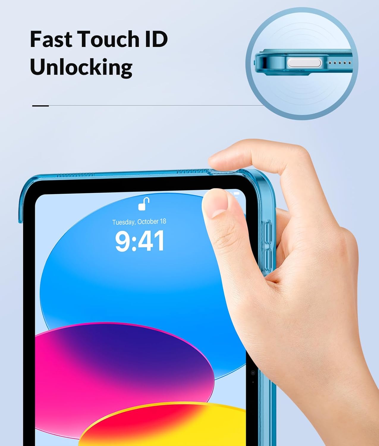 Support Touch ID Function and Auto Wake/Sleep – Built-in magnetic strip, our iPad 11th/10th gen Case can automatically wakes or puts your tablet to sleep when the lid is opened and closed. Protects and extends battery life; precise cutout also completely supports newest touch ID key function