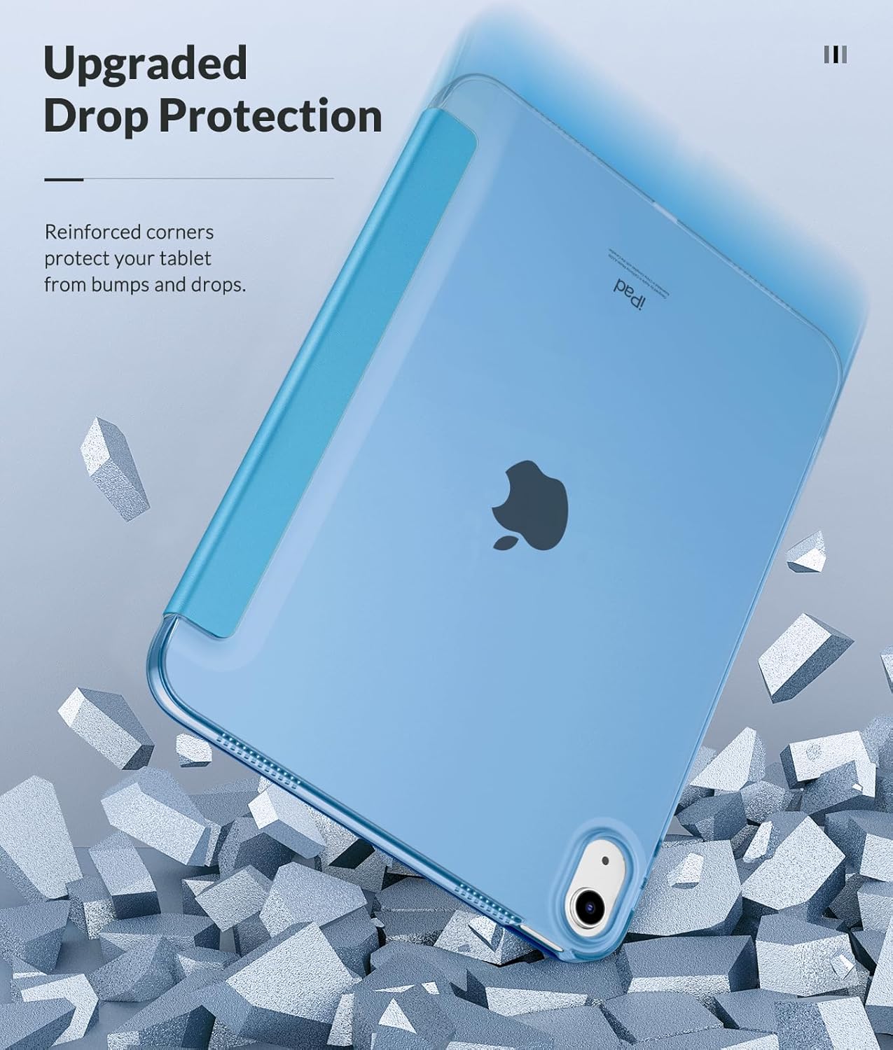 MoKo Case for New iPad (A16) 11th Generation 2025/ 10th Generation 2022, iPad 11 inch/ 10.9 inch Case with Soft TPU Translucent Frosted Back Cover, Auto Wake/Sleep, Support Touch ID,Misty Blue