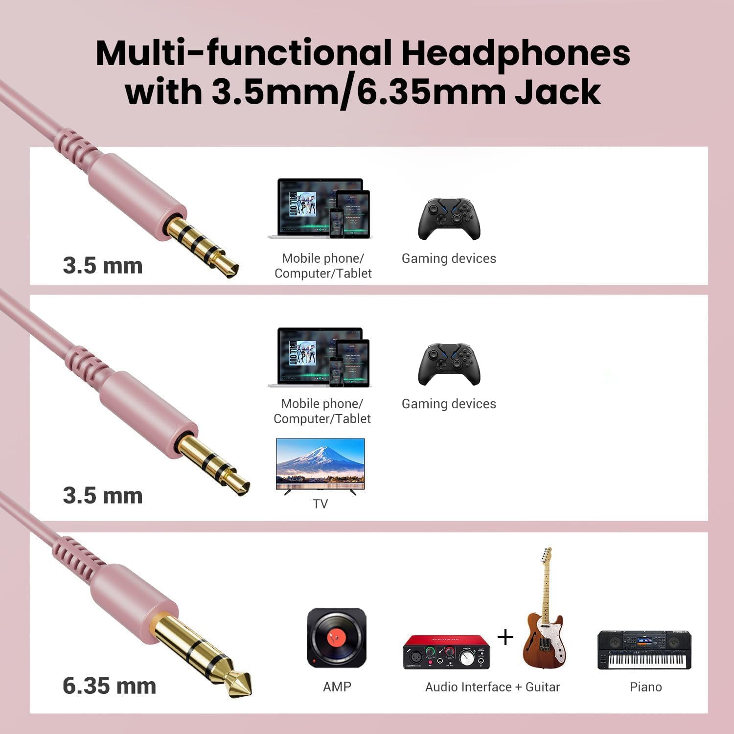 OneOdio Wired Over Ear Headphones Studio Monitor & Mixing DJ Stereo Headsets with 50mm Neodymium Drivers and 1/4 to 3.5mm Jack for AMP Computer Recording Podcast Keyboard Guitar Laptop – Pink