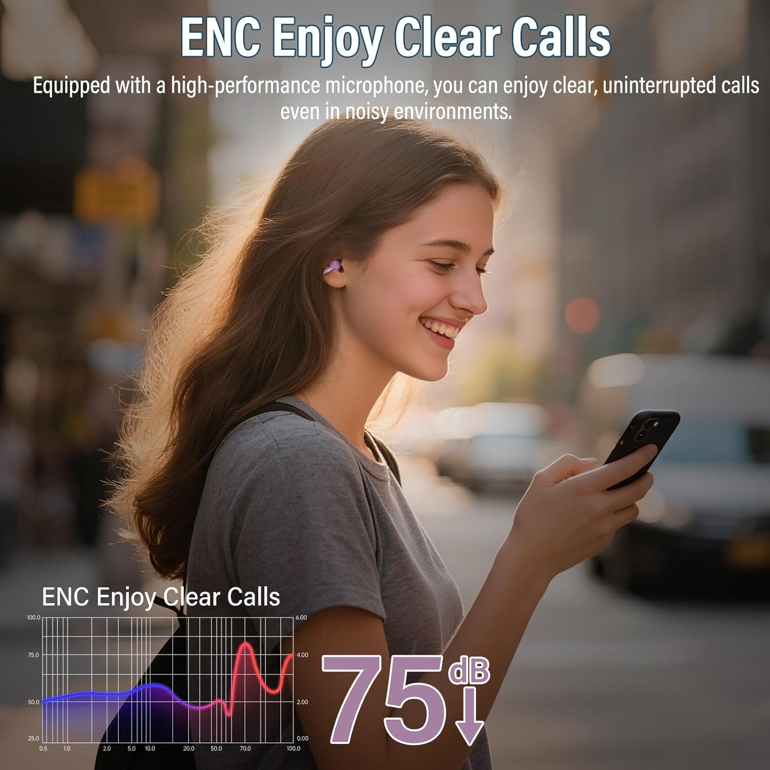 Clear Calls with ENC Noise Reduction: Bluetooth Headphones Built-in ENC microphones intelligently filter background noise so your voice stays clear and natural during calls. Even in noisy streets, windy weather, or busy gyms, you can enjoy smooth, face-to-face call quality that makes every conversation effortless.