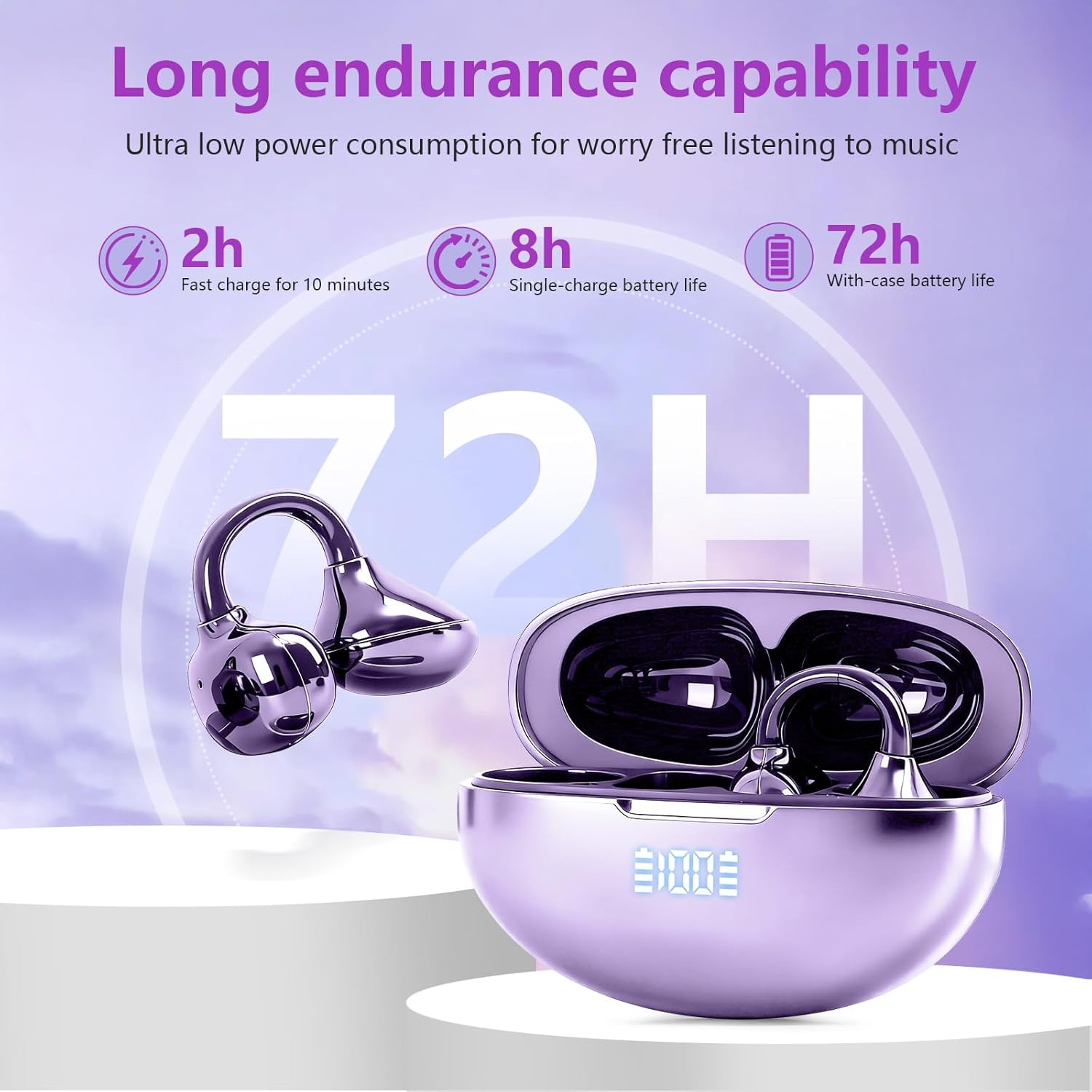 Pearl Clip Ear Open Earbuds, Bluetooth 5.4 Headphones, IPX7 Waterproof Headsets, Clip on Earphones with Microphone, Suitable for Small Ears, Sports and Running, Exercise(Purple)
