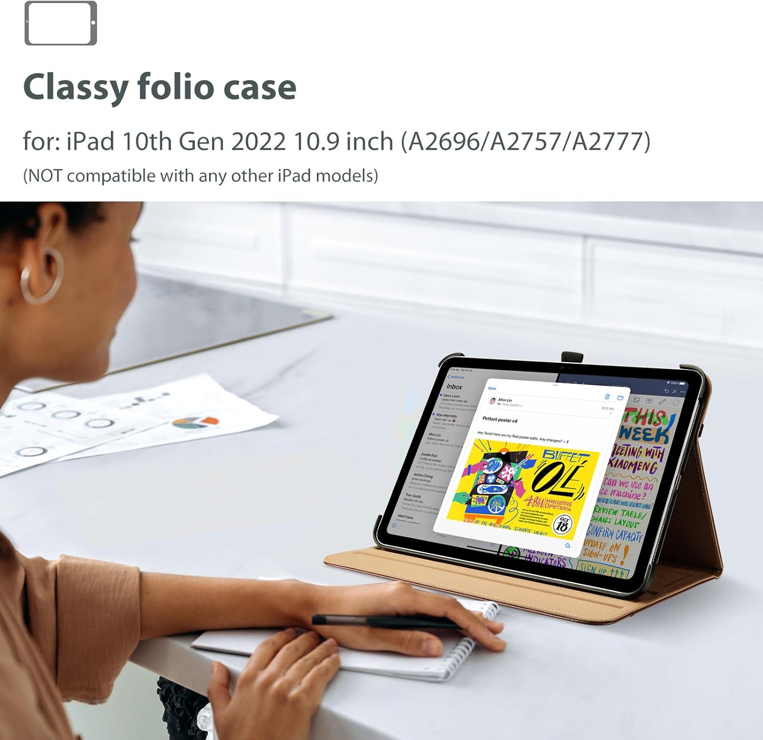 Compatibility: ProCase premium leather folio case for iPad A16 11th Generation 11 Inch 2025(Model: A3354/A3355/A3356)/iPad 10th Generation 10.9 Inch 2022(Model: A2696 A2757 A2777). Please check the back bottom of your iPad to find the model number “Axxxx”.