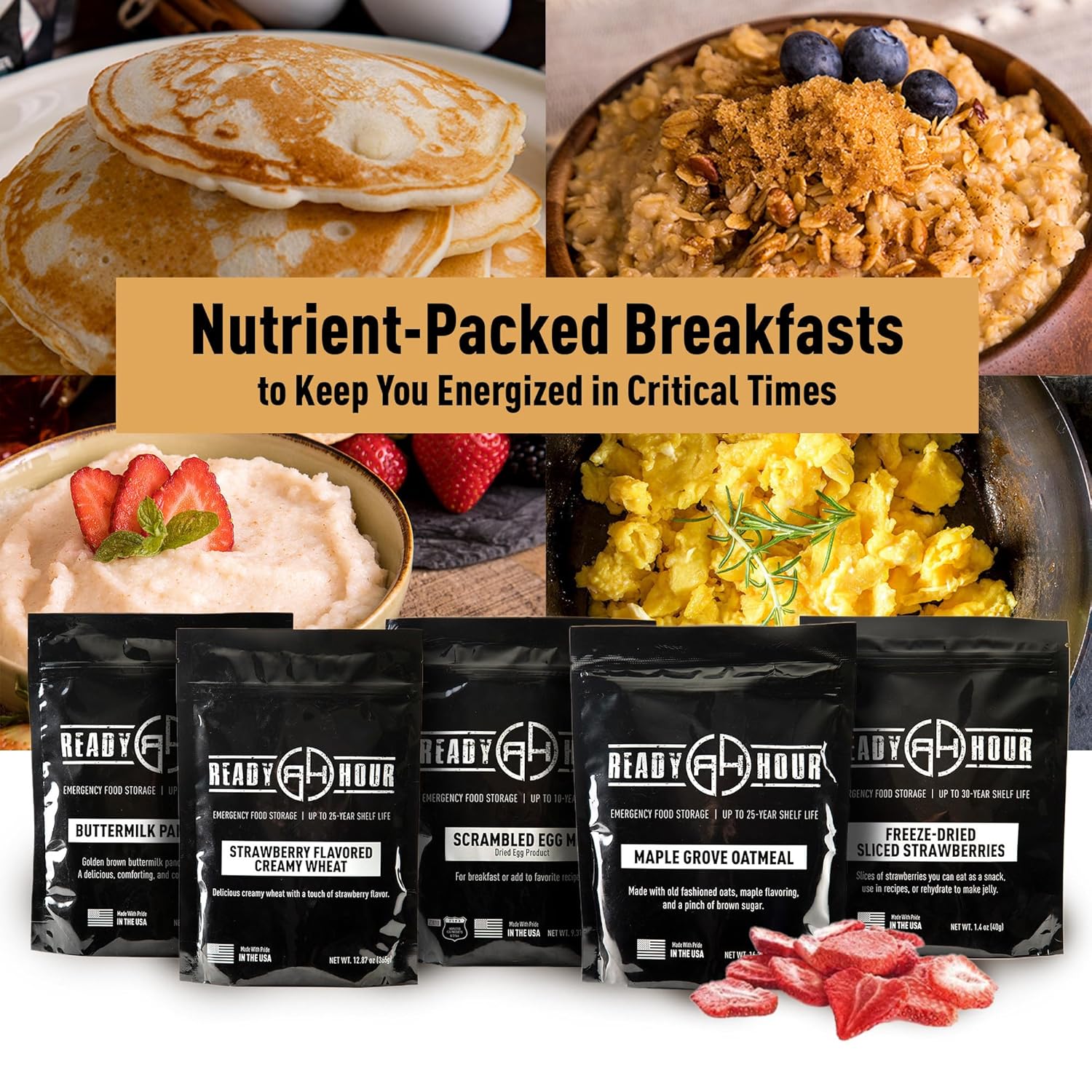 Ready Hour Breakfast Bucket (128 Servings), Emergency Food Supply, Emergency Food Kit, 25-Year Shelf Life Food, Survival Food Buckets, Long-Lasting Food Supply, Flood-Safe Container