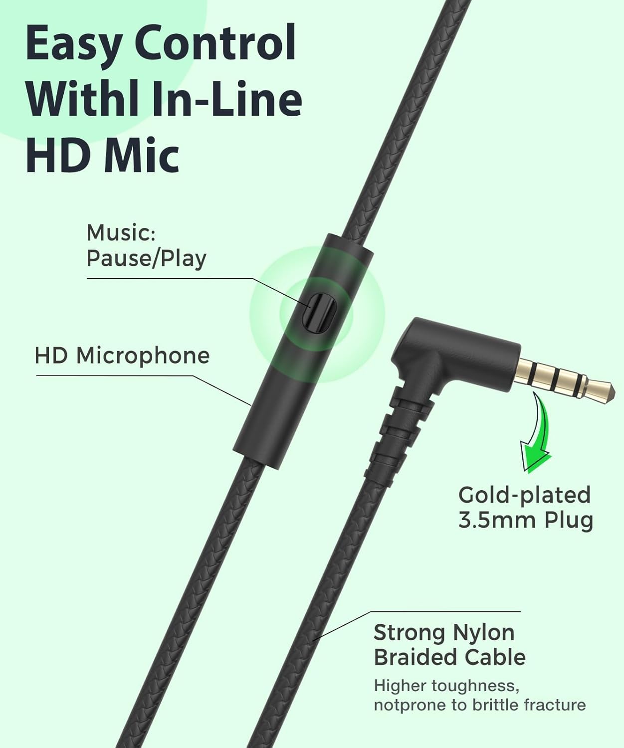 { Durable & Gift } : This folding headphones with mic has a strong, elastic plastic shell and no tangle 4.9ft nylon woven rope ensure durability, It is a good gift for back to school and so on.