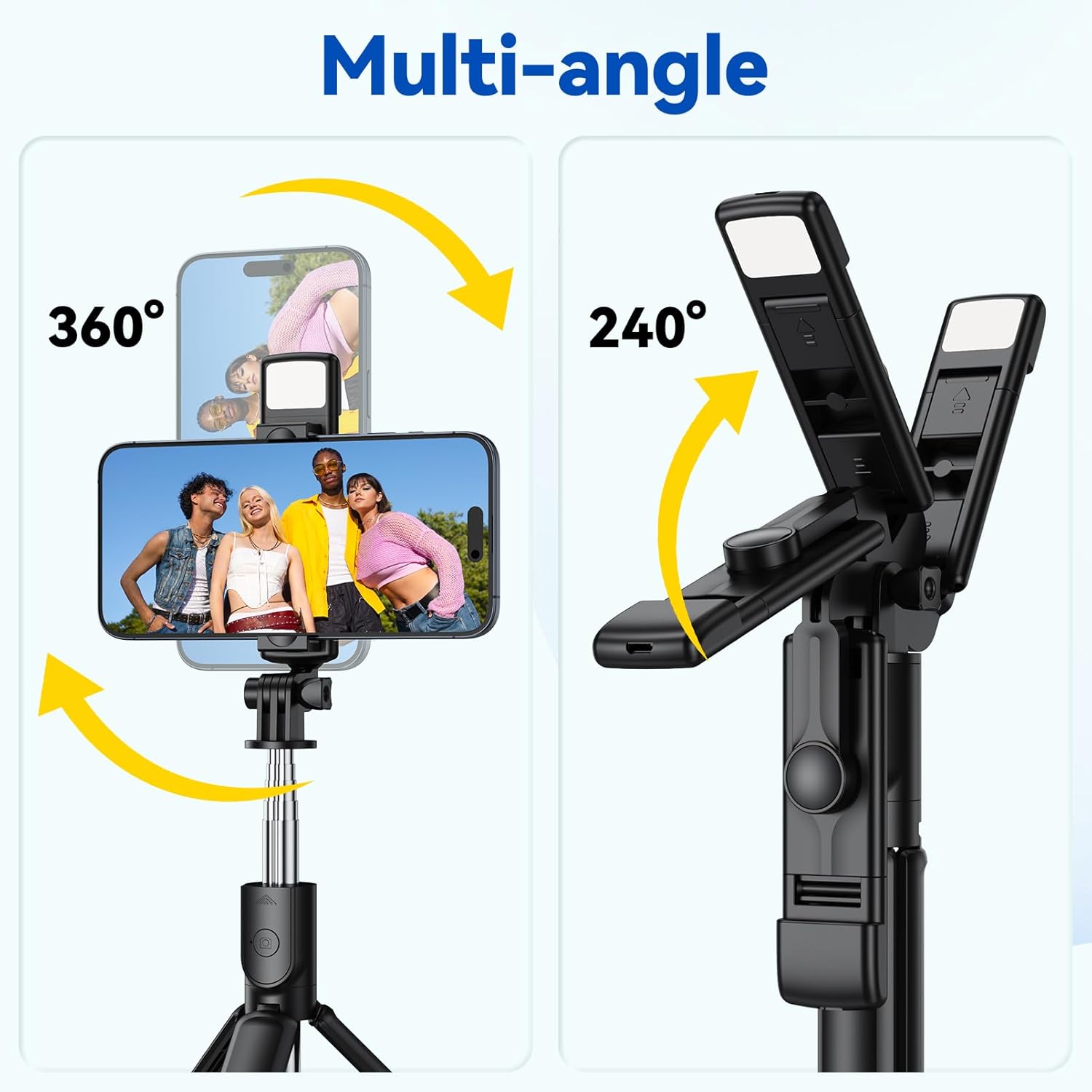 [with Light] This selfie stick has been upgraded from the original model with the addition of a two-level adjustable light, allowing you to capture stunning photos even at night or in low-light conditions.