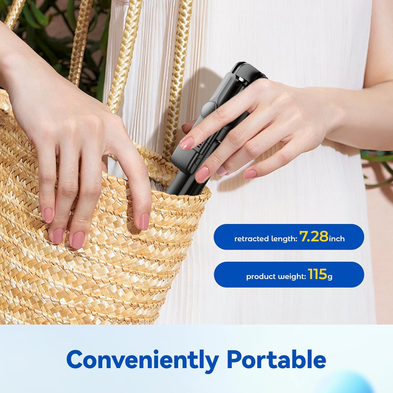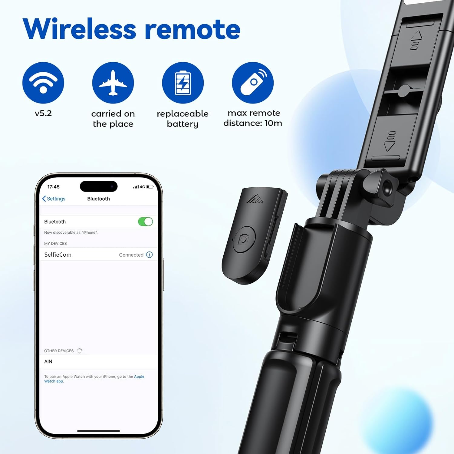 [Convenient Wireless Remote] The detachable remote control included with our selfie stick provides the ultimate convenience for taking pictures without the hassle of reaching for your phone. This feature allows you to snap photos from a distance, making it ideal for group shots or solo adventures