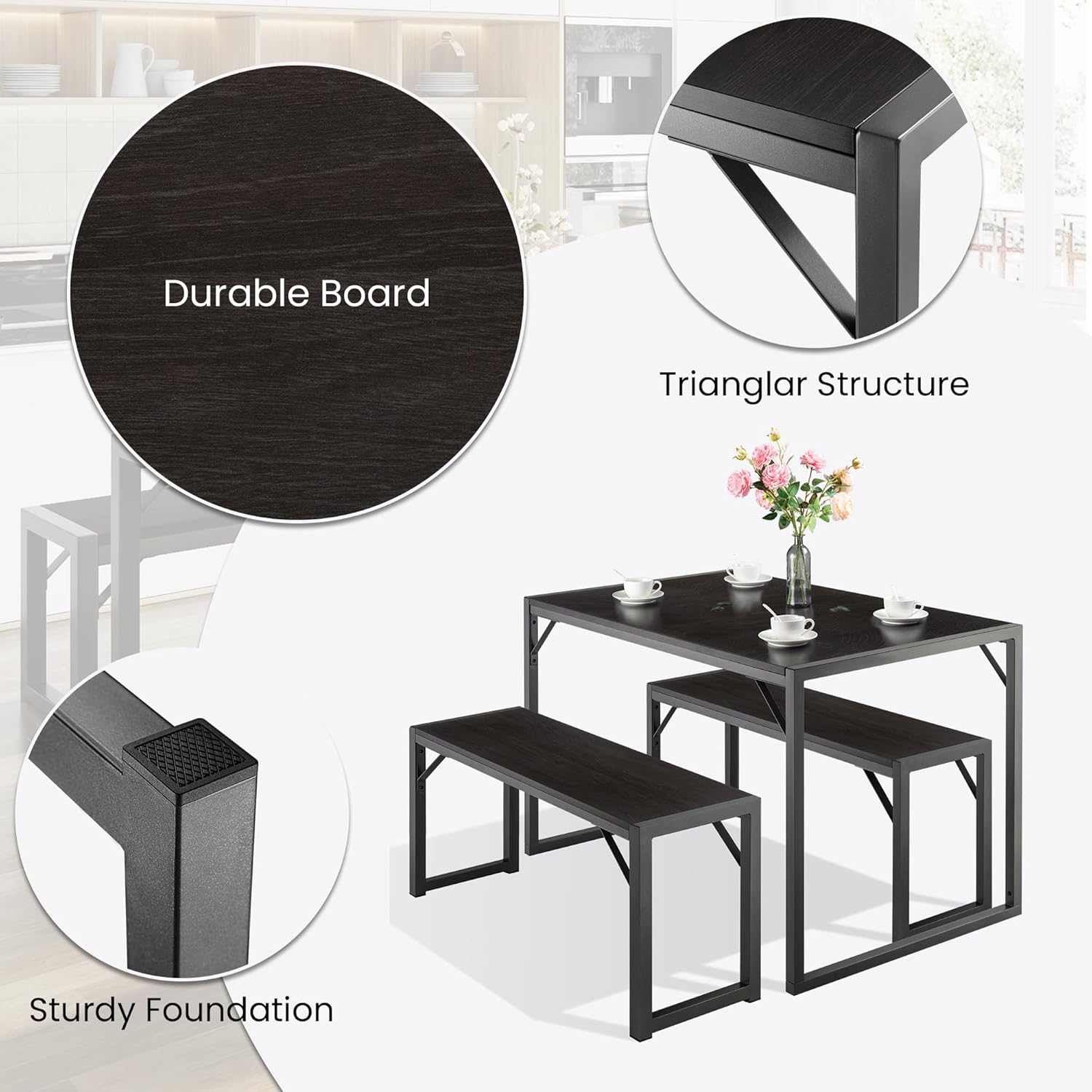 Great for Small Space!: This 3-piece dining set is ideal for limited spaces. Benches fit perfectly under the table, which maximizes space while maintaining aesthetic appeal.