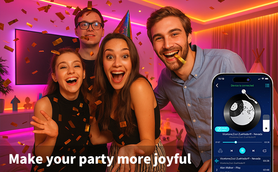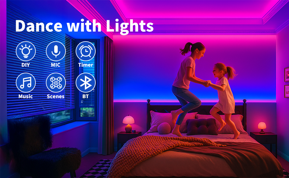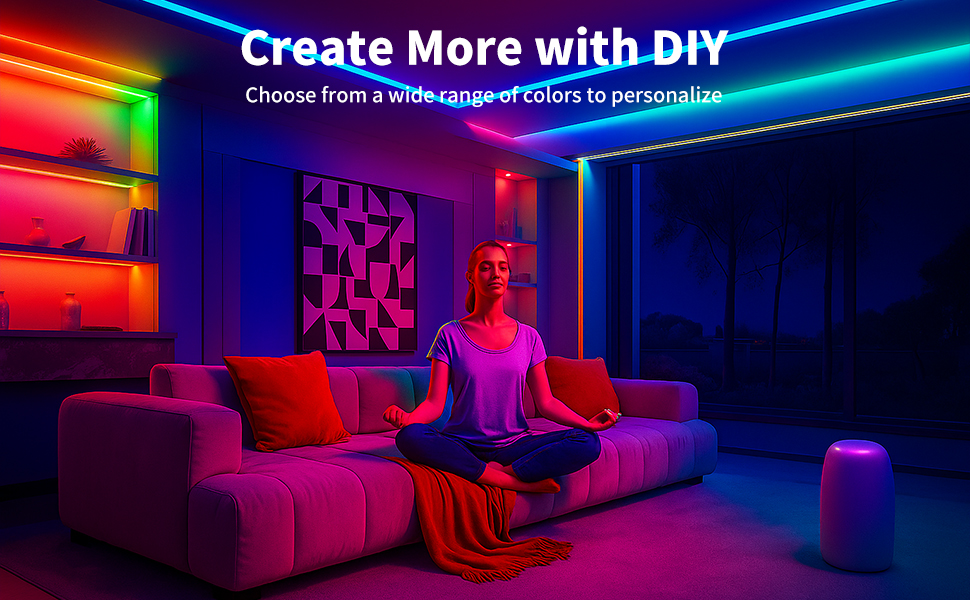 MUSIC SYNC MODE: The strip light has a smart Music Mode , allowing led lights to change colors in sync with the music. You can also choose 22 unique patterns. Each mode can be applied to different scenes, and everything is under control!