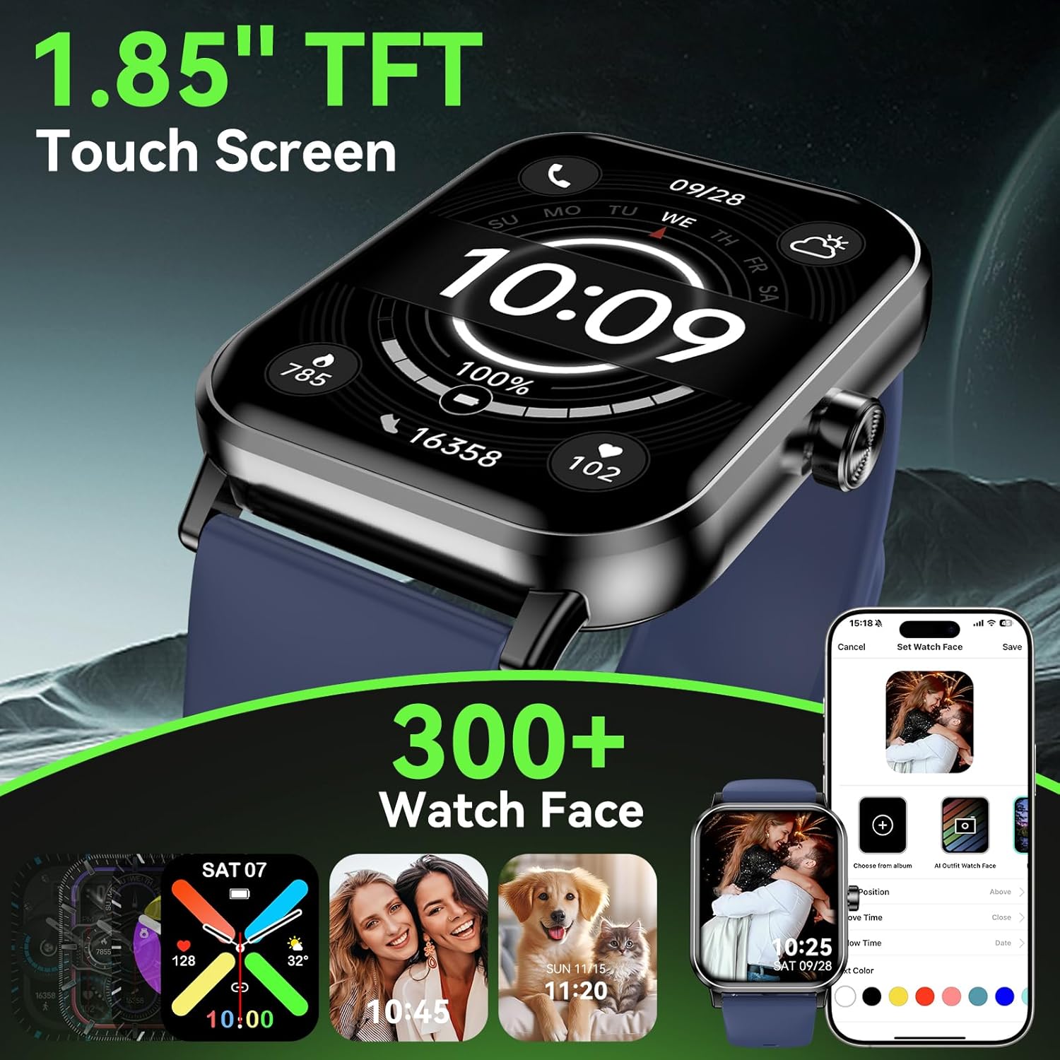 Smart Watch for Men Women, 1.85″ HD Touchsreen Fitness Tracker, 120+ Sport Modes, 24/7 Heart Rate & Sleep Monitor, Pedometer, Calories, IP68 Waterproof, Fitness Watch for Android iPhone (Blue)