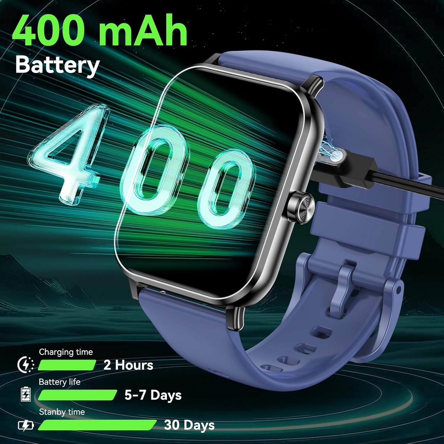 Voice Assistant & High-capacity Battery: Smart watch for men is equipped with a convenient voice assistant that makes it easy to give various commands. It also has a high-capacity 400 mAh battery with up to 30 days of runtime and 30 days of standby time