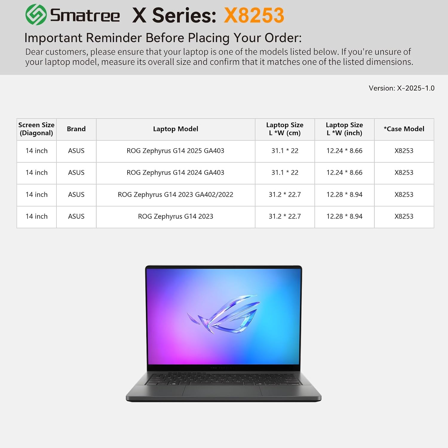 Compatibility: designed to perfectly fit for 14 inch ASUS ROG Zephyrus G14 (2025) GA403; 14 inch ASUS ROG Zephyrus G14 (2024) GA403; 14 inch ASUS ROG Zephyrus G14 (2023) GA402; 14 inch ASUS ROG Zephyrus G14 (2022)