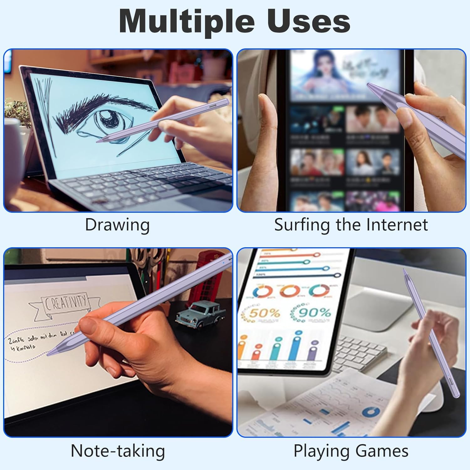 ✅Widely Used: This stylus pen can be used for taking notes, playing games, drawing, writing, signing, and illustrating. It supports almost all kinds for apps such as GoodNotes, Notability, Noteshelf, Notepad+, Procreate, ArtFlow, Painter, Design, etc