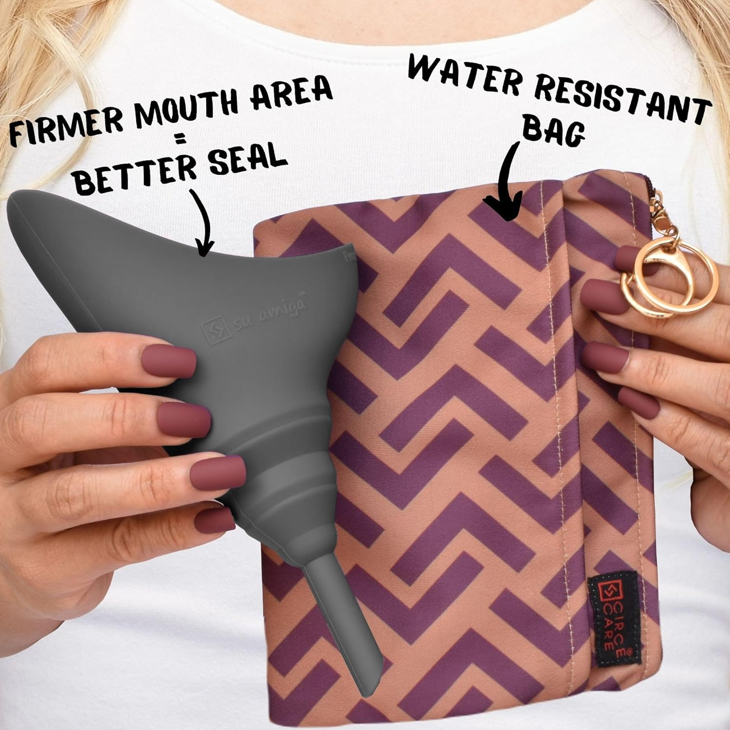 ☘️EASY TO CLEAN: Being a feminine hygiene product, our portable female urinals are made with high quality Medical Grade Silicone with anti-dust coating, anti-odor, hygienic, waterproof, durable and reusable silicone material. Unlike disposable pee/ urinal device, SuAmiga womens pee funnel is ultralight, environment friendly and in accordance with Leave No Trace ethics. A Post-surgery must have. Clean with simple soap and water. The bag is Machine washable.