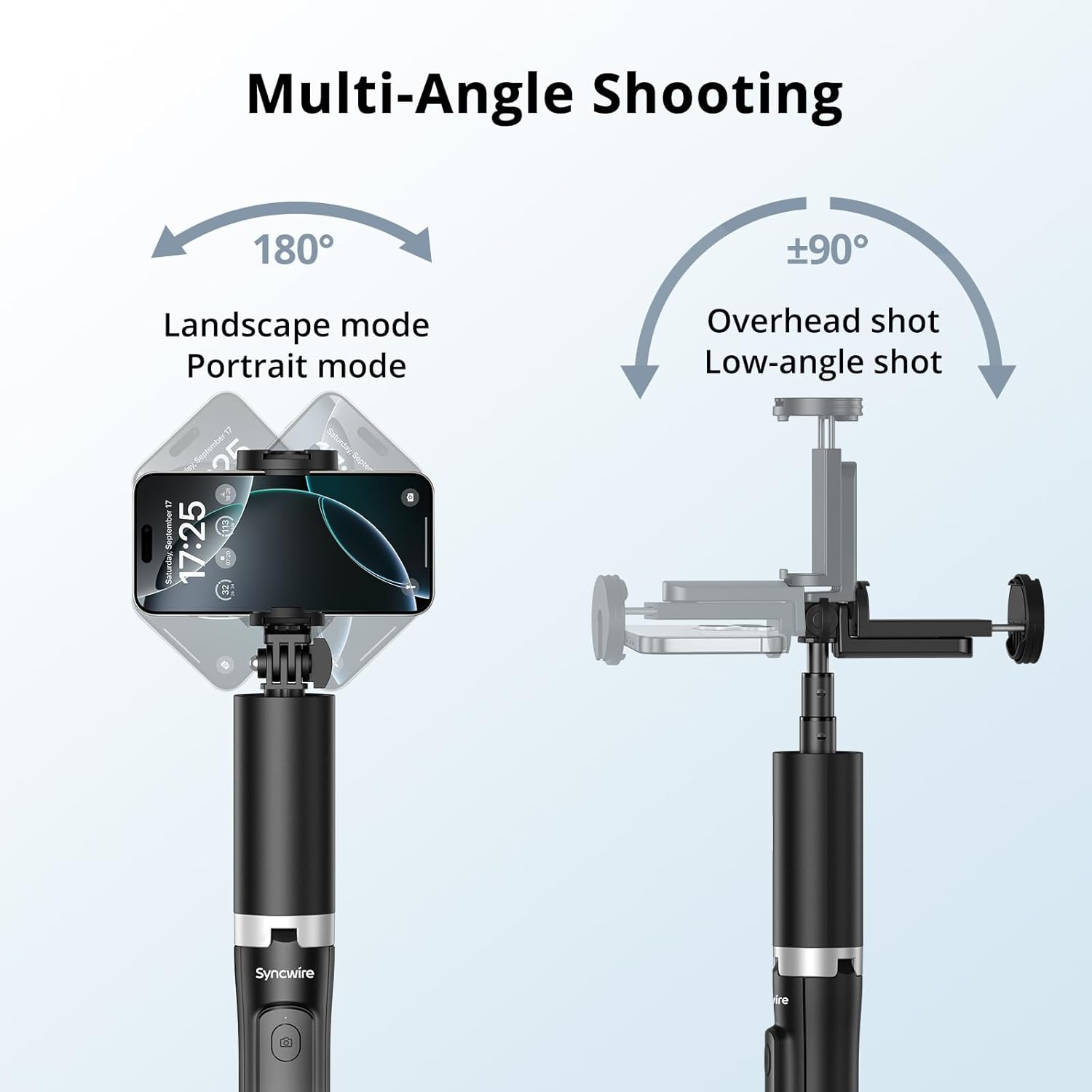Be the first to review “SYNCWIRE 63″ Phone Tripod for iPhone, Extendable Selfie Stick Tripod with Bluetooth Remote, All-in-One Aluminum Stand with Cold Shoe Mount Compatible with GoPro, iPhone and Android Smartphones, Black”