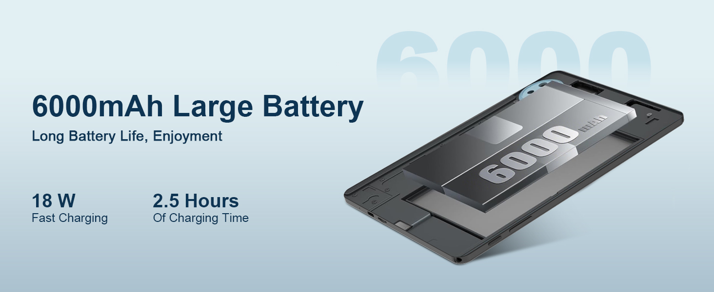 🔋 All-Day Battery with Fast Charging Stay powered through your day with a massive 6000mAh battery, delivering up to 8 hours of mixed-use on a single charge. When it’s time to power up, the 18W PD fast charging via the USB Type-C port gets you from zero to full in approximately 2 hours, minimizing downtime and maximizing productivity.