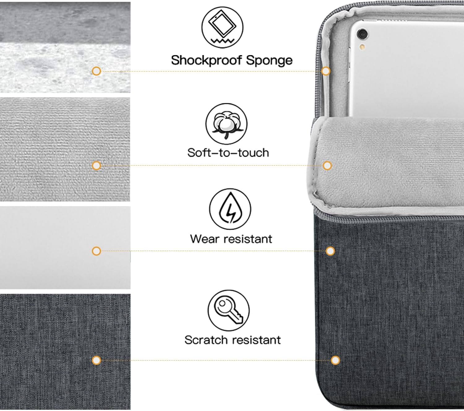 【Premium Material】 Made from premium polyester material, it is water resistant and sturdy, which can can effectively keep you tablets from water, dust, drops, bumps, and cosmetic damage. The simple and stylish style gives your device a nice look, and it is suitable for both men and women.