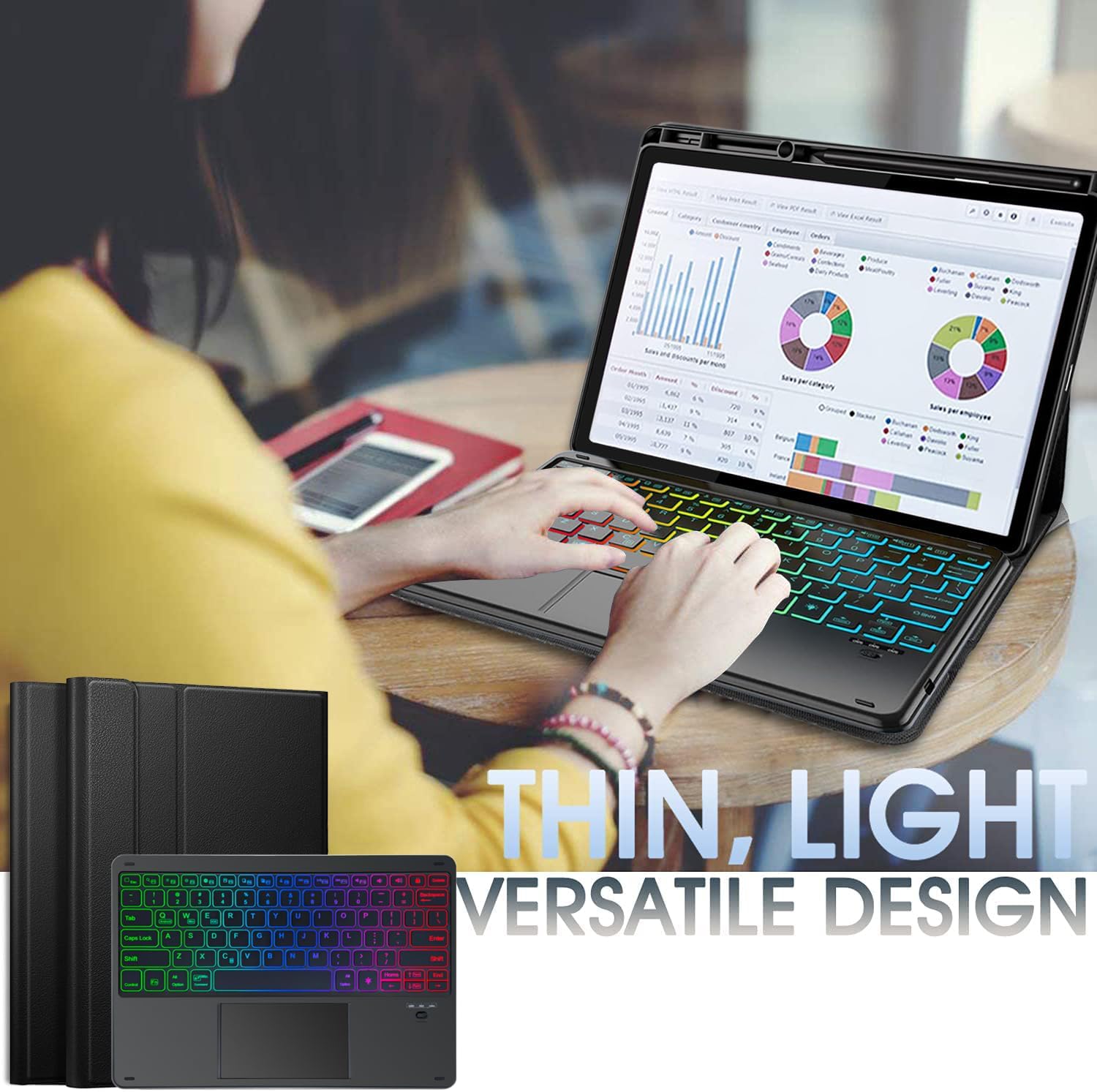 【Rainbow Backlight】Suitable for Lenovo Yoga Tab Plus RGB rainbow backlight keyboard, 7 adjustable backlight colors, breathing light backlight mode can be automatically switched. The backlit keyboard can be used in the dark, providing a comfortable typing experience.