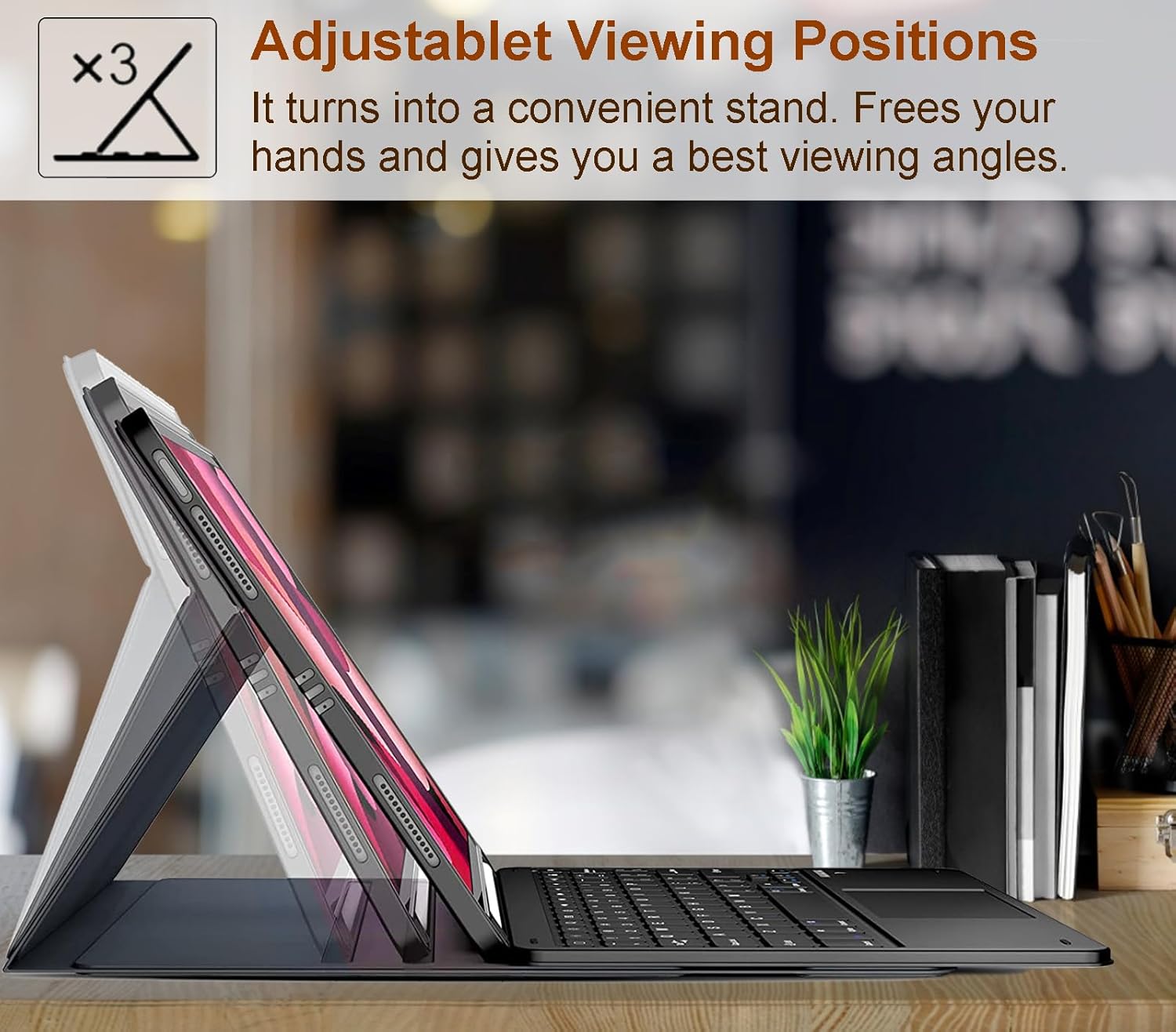 【Touchpad Keyboard + Multi Touch】The keyboard has a trackpad that supports multi-finger gesture functions. A single finger can slide to move the cursor,click to select a target,etc.Use two fingers to slide to switch pages,open/reduce images,etc.Use three fingers to slide down to take a screenshot,slide up to return to the main interface,etc