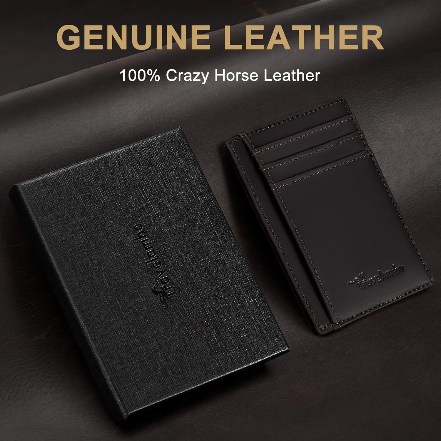 Travelambo 100% Genuine Leather Wallet for Men and Women, Slim Minimalist RFID Blocking Front Pocket Credit Card Holder with Gift Box