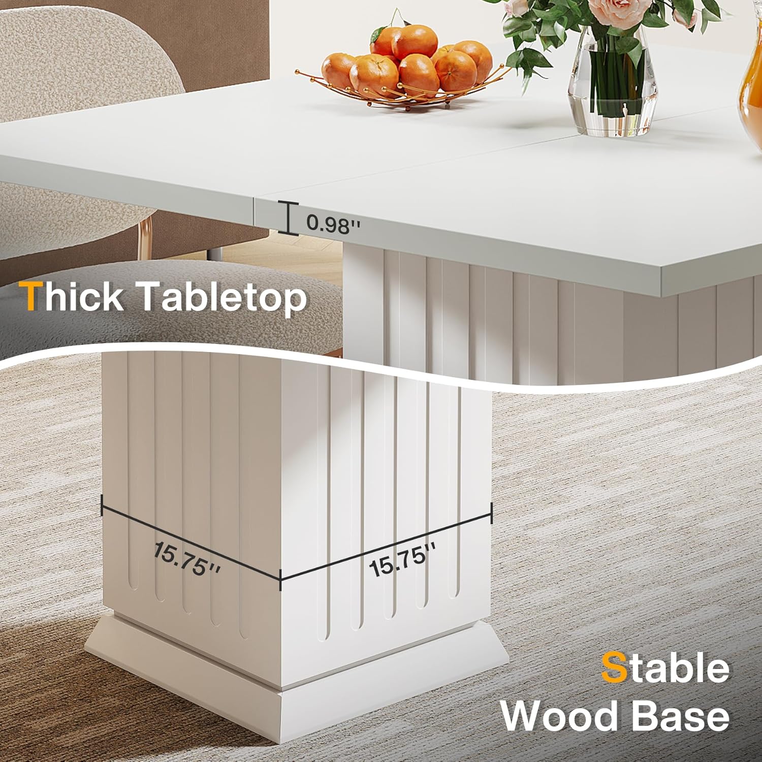 Modern Dining Table: This table features a smooth white finish tabletop, adding a unique personality to your dining area. Its clean lines and simplicity add a touch of elegance to your dining space, blending with your contemporary interiors