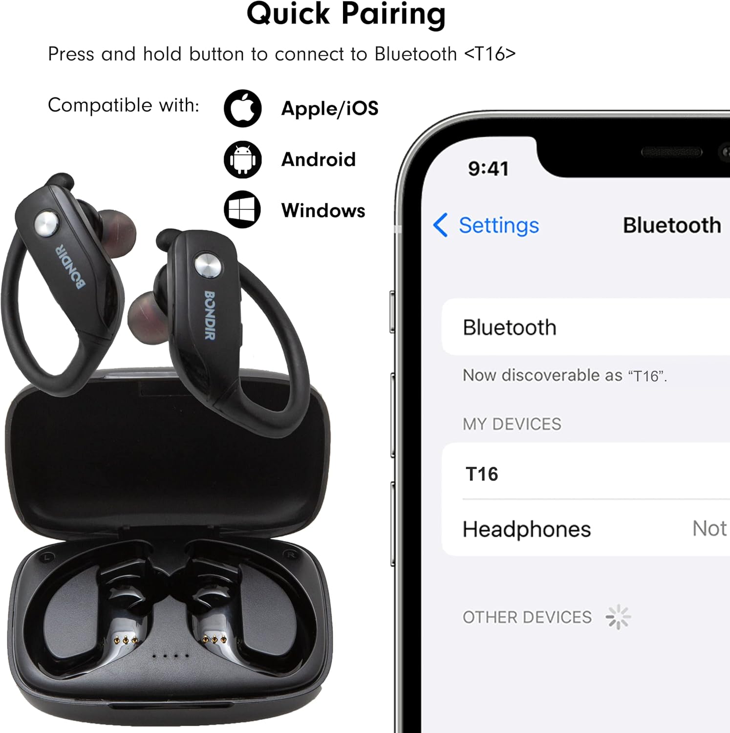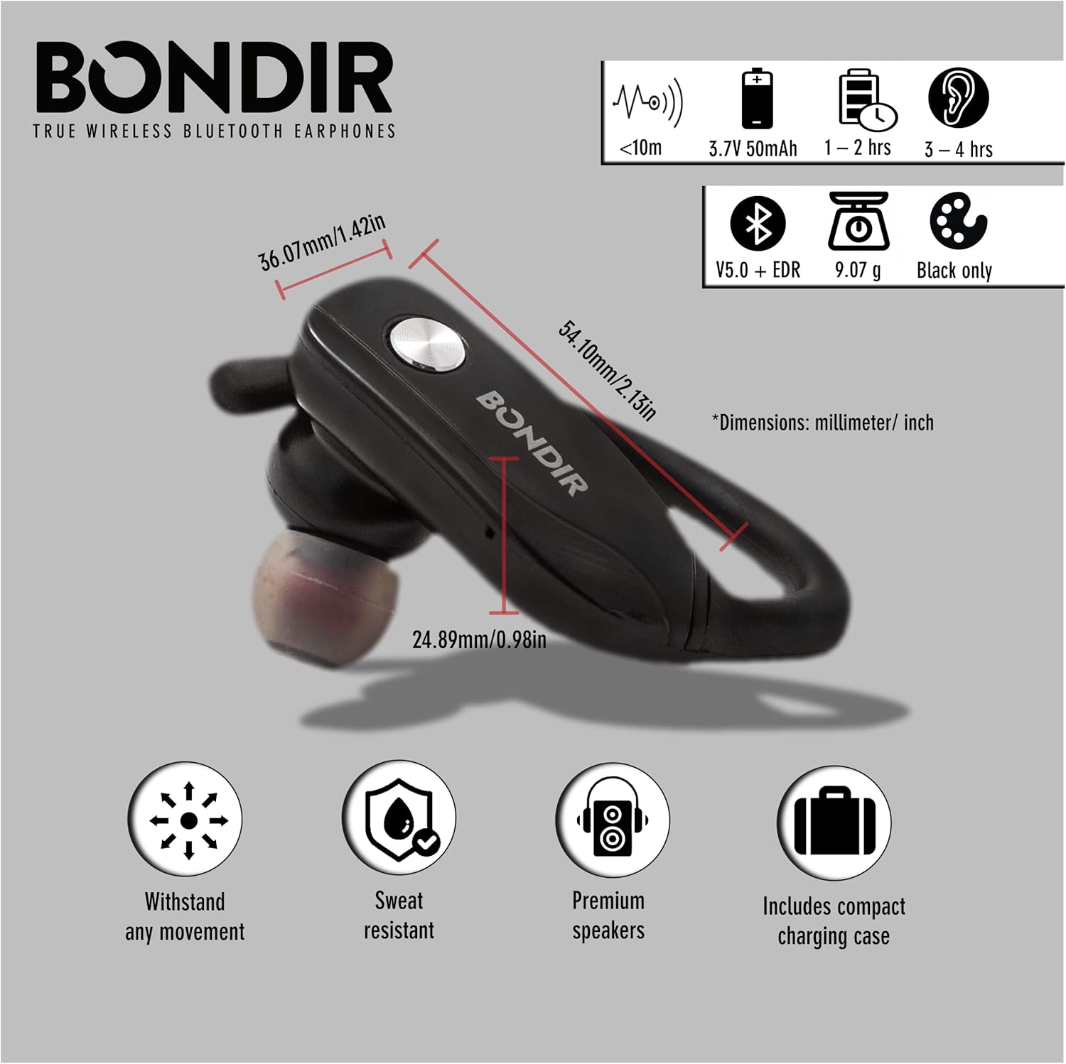 Sweat resistant technology.Includes protective and compact charging casePremium speakers deliver full and powerful detailed sound3-4 hours play time for music listening, video watching, and taking important phone calls.Bluetooth Version: V5.0 +EDRTransmission Distance: <10mBattery: Li-battery 3.7V 50mAhCharging Time: 1hrs for earbuds / 2hrs for charging case
