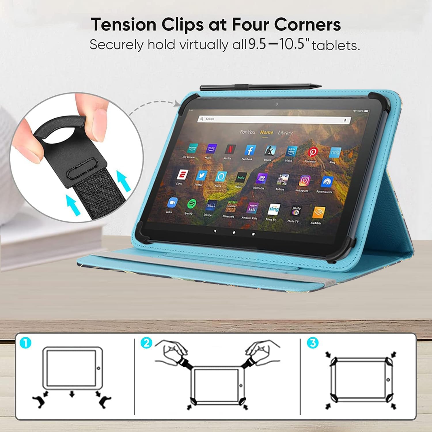 Universal Folio Case compatible with 9.5″-10.5″tablets (for YELLYOUTH 10.1″,Onn 10.1″,all 9.7″iPad 6 5 4 3 2 1,iPad air 2, iPad pro 9.7;Samsung Galaxy Tab A 10.1”2016 2019/Tab S2 9.7”2015/Tab A 9.7”2015/Tab Pro 10.1”/Tab 4 3 2 10.1 inch;Tab M10 HD 10.1”/Tab P10 10.1”/Tab M10 10.1”;ZenPad 3S 10; ZZB ZB10; Dragon Touch K10/Notepad K10, A1X Plus,A1X,A1,M10X,E97,A93,Android Phone Tablets, Fire HD 10(No back camera opening; NOT support auto sleep/wake for any tablets).