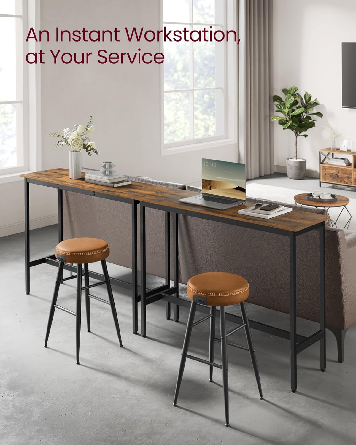 VASAGLE Bar Table, Narrow Long Kitchen Dining Table, Sturdy Metal Frame, Industrial, 15.7 x 47.2 x 35.4 Inches, Rustic Brown and Ink Black ULBT120B01