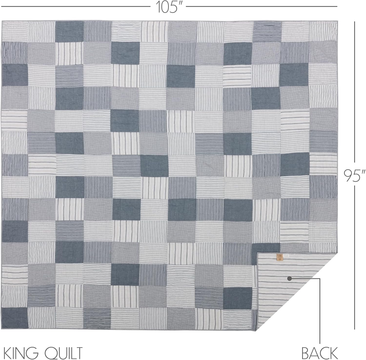 VHC Brands Sawyer Mill Patchwork Chambray Cotton Farmhouse Pre-Washed King Bedding Accessory, Quilt 105×95, Blue Denim