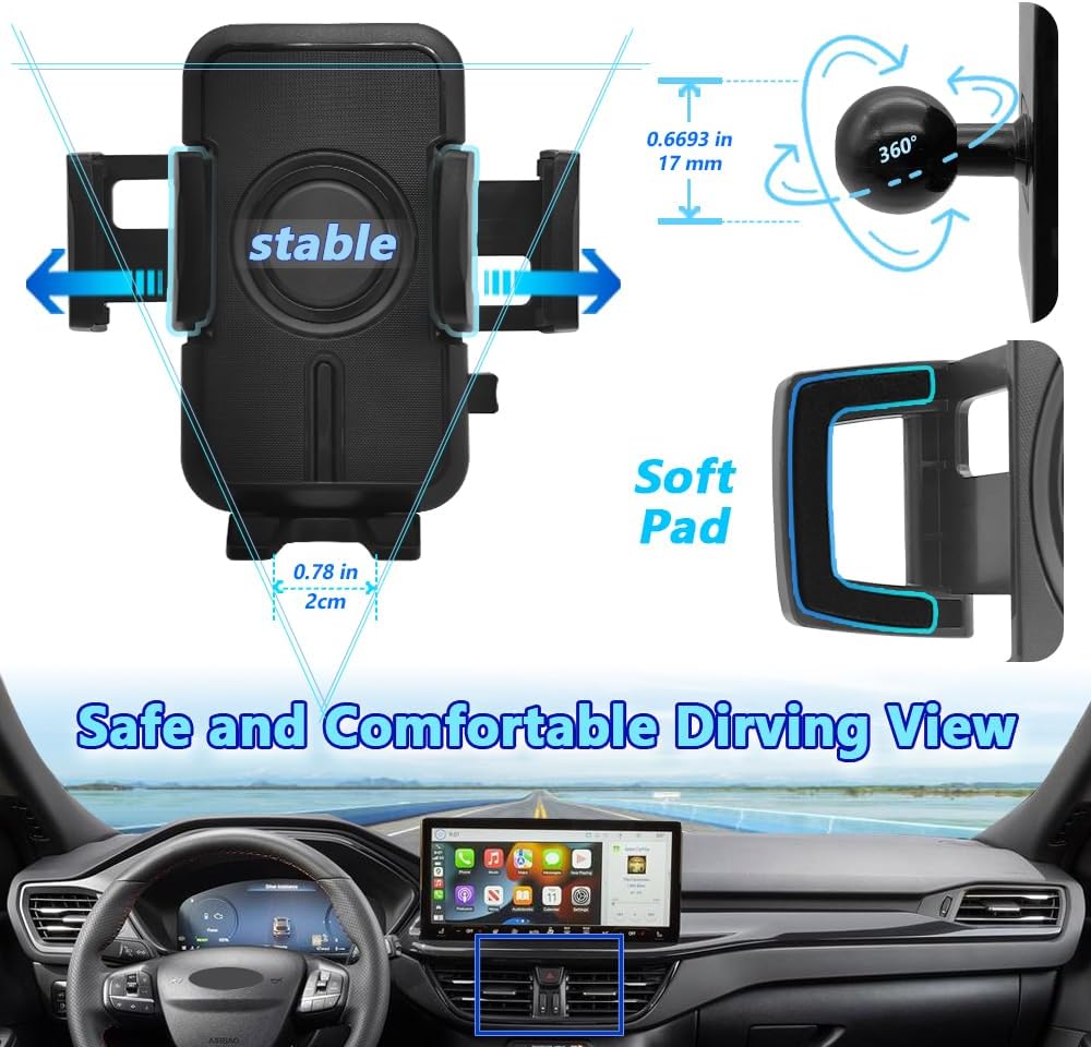 WAAPAK Car Phone Holder Mount 2020-2025 Ford Escape SUV Auto Accessories Interior Decoration Smartphone Thick Case Cradles Navigation Bracket iPhone