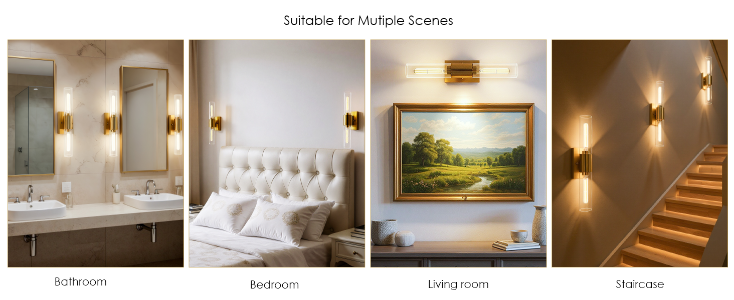 This bathroom wall light features a tempered glass lampshade and a solid metal base, offering exceptional durability and stability. Its stylish design seamlessly complements a variety of home decor styles. Whether for modern or vintage-inspired interiors, this tubular wall lamp is an ideal choice
