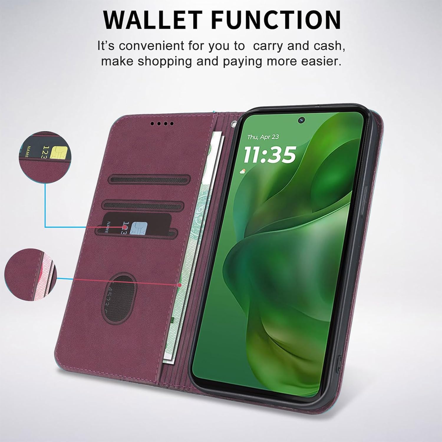 -Moto G Power 2025 folio book cover design, simply close the front cover to guard the screen against scratches and drops.