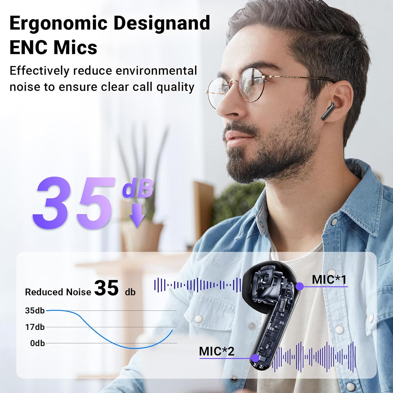 【Clear Calls & ENC Noise Cancelling Mics】Stay connected with dual ENC microphones that reduce ambient noise for crystal-clear calls. Perfect for office work, video meetings, and travel, keeping your voice loud and natural in any environment.