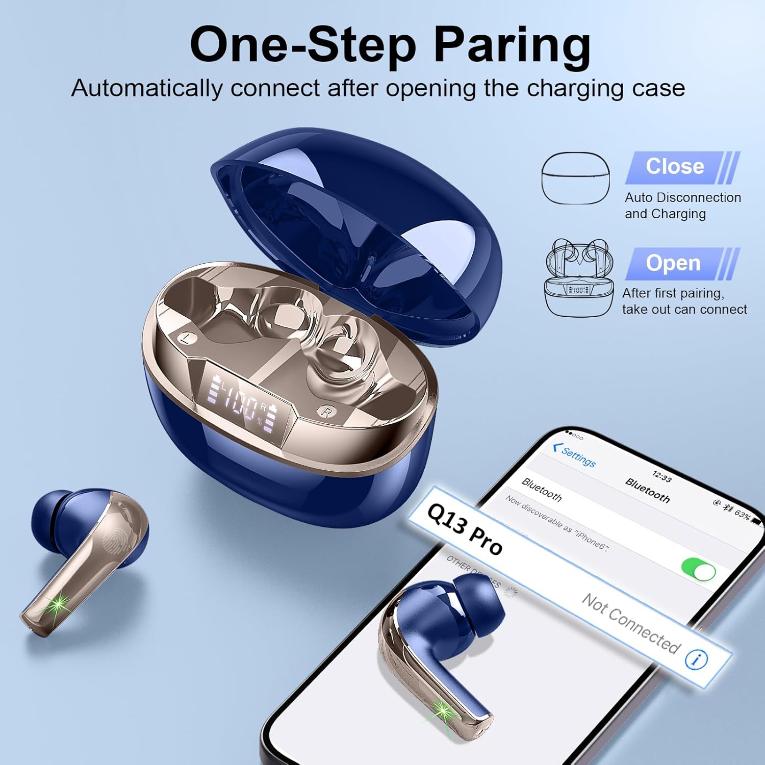 Long Battery Life with LED Display: No more battery anxiety—the earphones wireless bluetooth offer up to 7 hours of playtime on a single charge, and a total of 47 hours with the compact charging case. Fully recharges in just 1.5 hours, perfect for busy mornings or last-minute trips. The LED display shows remaining battery for both earbuds and case, so you’re always prepared, whether at work or on the move.