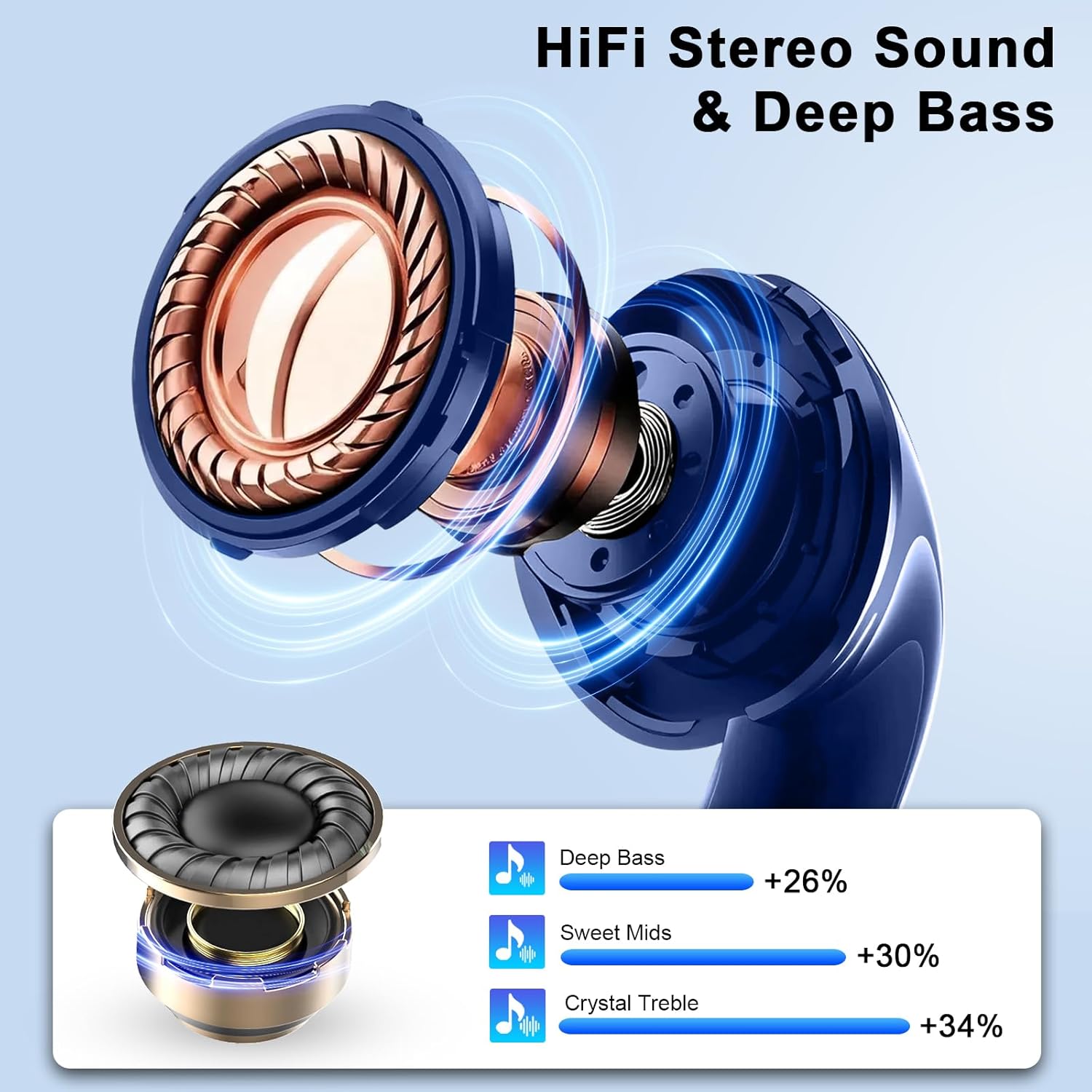 Smart Touch Controls & Broad Compatibility: Each wireless bluetooth headphones features a fingerprint-style touch panel for precise control—adjust volume, take calls, or skip tracks with a simple tap. No need to reach for your phone. Compatible with most smart devices including iPhone, Android, etc., the wireless bluetooth earphones are perfect for hands-free calling, remote working, commuting, and multitasking on the go.